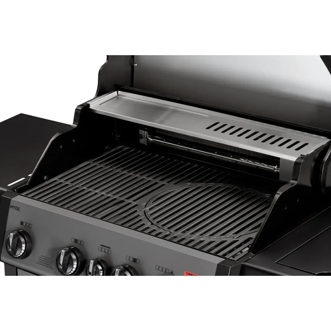 Grill gazowy Enders Hyde 4 SIKR Turbo to połączenie nowoczesnych rozwiązań technologicznych z komfortem obsługi, stworzone z myślą o najbardziej wymagających fanach grillowania. System Switch Grid daje możliwość dostosowania grilla do różnych metod gotowania dzięki wymiennym elementom, takim jak wok, patelnia żeliwna czy brytfanna. Funkcja Turbo Zone pozwala błyskawicznie osiągnąć temperaturę ponad 400°C, co idealnie sprawdza się przy przygotowywaniu steków o chrupiącej powierzchni i soczystym środku.