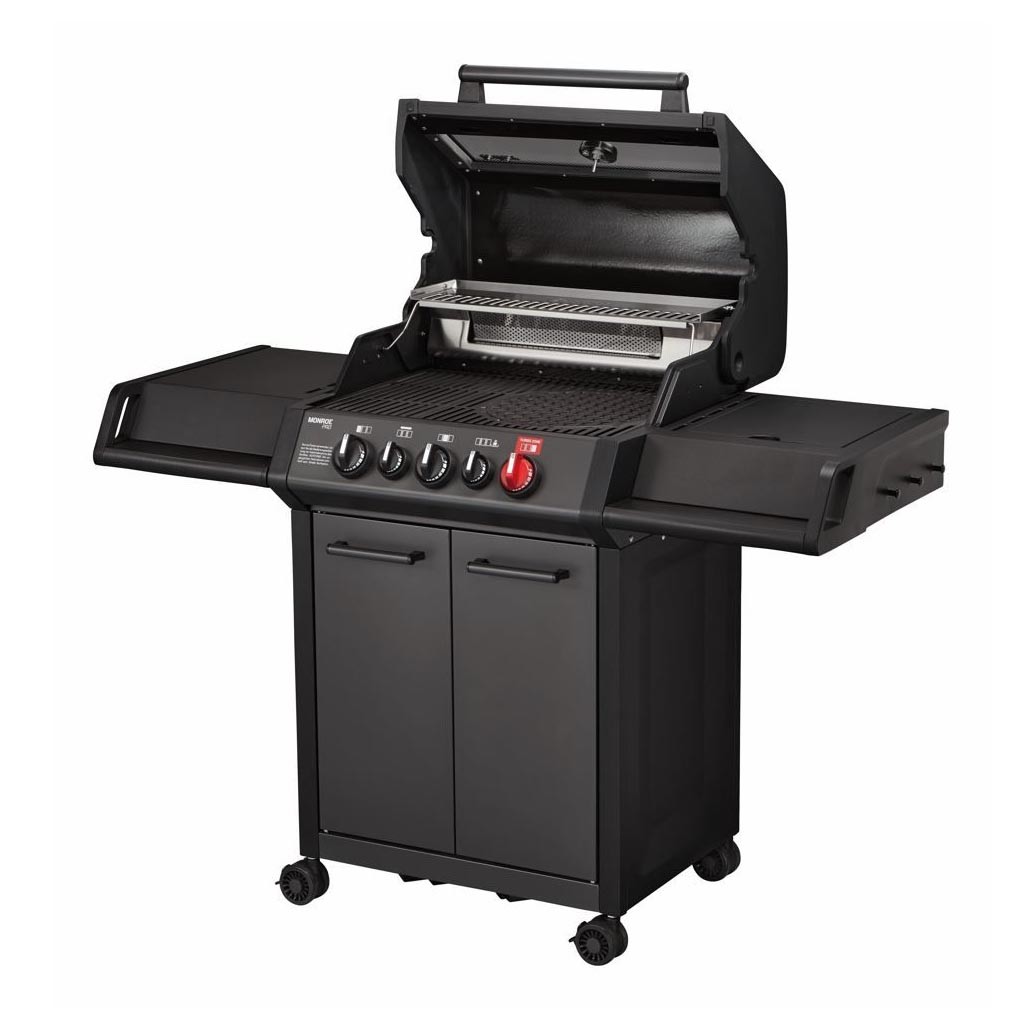 Grill został wyposażony w trzy główne palniki (2 x 3,5 kW oraz 1 x 4,2 kW), boczny palnik o mocy 2,9 kW, aromatyzery oraz palnik na podczerwień (3,5 kW), co daje szerokie możliwości przyrządzania różnorodnych potraw. Główny ruszt, wykonany z żeliwa pokrytego emalią porcelanową, zapobiega przywieraniu jedzenia i ułatwia grillowanie. Jego wymiary – 62 x 43 cm – oferują aż 2666 cm² powierzchni roboczej, a dodatkowy ruszt umieszczony wyżej umożliwia podgrzewanie lub przygotowywanie kolejnych dań. Dzięki systemowi wymiennych wkładów Switch Grid, grill staje się niezwykle wszechstronny – możesz z łatwością używać kamienia do pizzy, żeliwnej patelni czy specjalnego stojaka na kurczaka. Praktyczna dolna szafka pomieści 11-kilogramową butlę gazową oraz wszystkie niezbędne akcesoria.