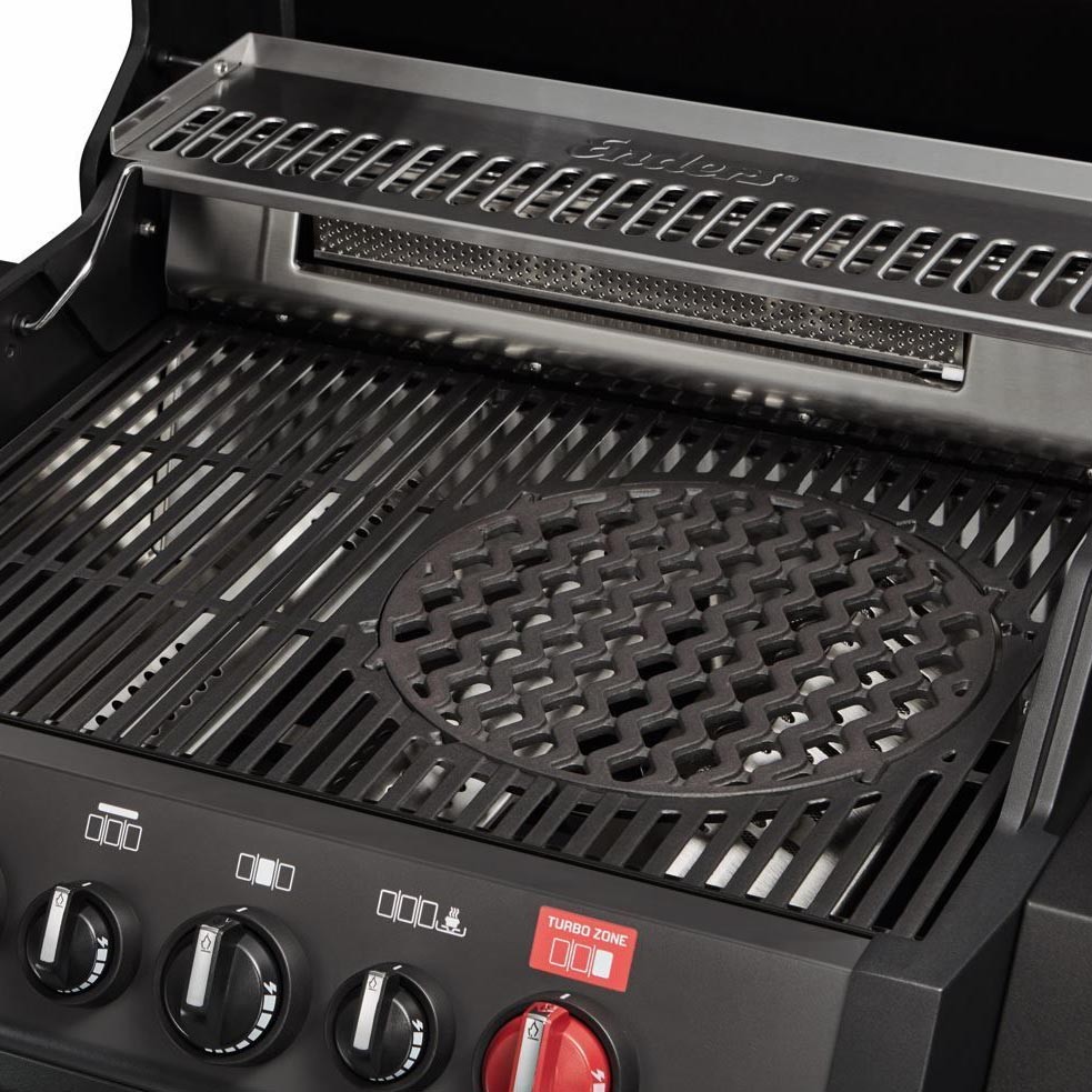 • Switch Grid – emaliowany ruszt żeliwny z wyjmowanym środkiem, pozwala zmieniać akcesoria, zwiększając zakres potraw przygotowanych na grillu