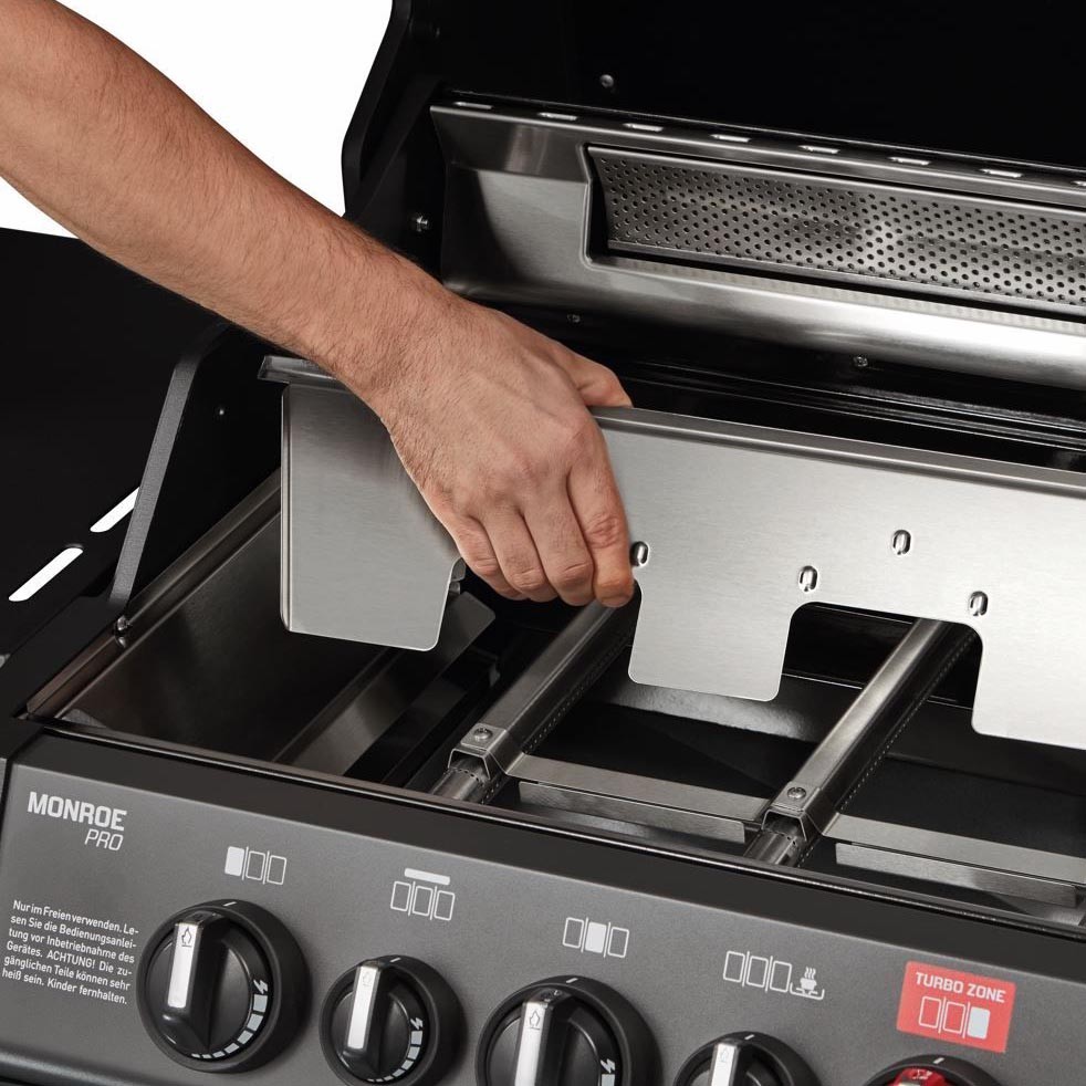 Grill Monroe PRO 3 SIK Turbo Shadow Series to sprzęt klasy premium, dopracowany w najdrobniejszych detalach. Renomowana niemiecka firma Enders stworzyła ten model z wyjątkowo trwałych materiałów, odpornych na działanie czynników atmosferycznych. Grill został wyposażony w szereg innowacyjnych technologii, które znacząco podnoszą komfort użytkowania. Jedną z nich jest funkcja Turbo Zone, umożliwiająca osiąganie ekstremalnie wysokich temperatur – nawet powyżej 400°C. Z kolei system Heat Range gwarantuje równomierne i stabilne rozprowadzanie ciepła. Dzięki technologii Simple Clean, czyszczenie grilla jest bardzo proste – wszystkie elementy można łatwo zdemontować i dokładnie umyć ręcznie.