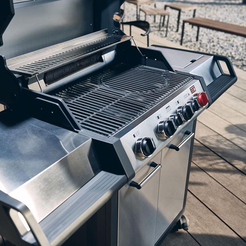 • 4 bezstopniowe palniki ze stali nierdzewnej do wydajnego grillowania bezpośredniego i pośredniego.