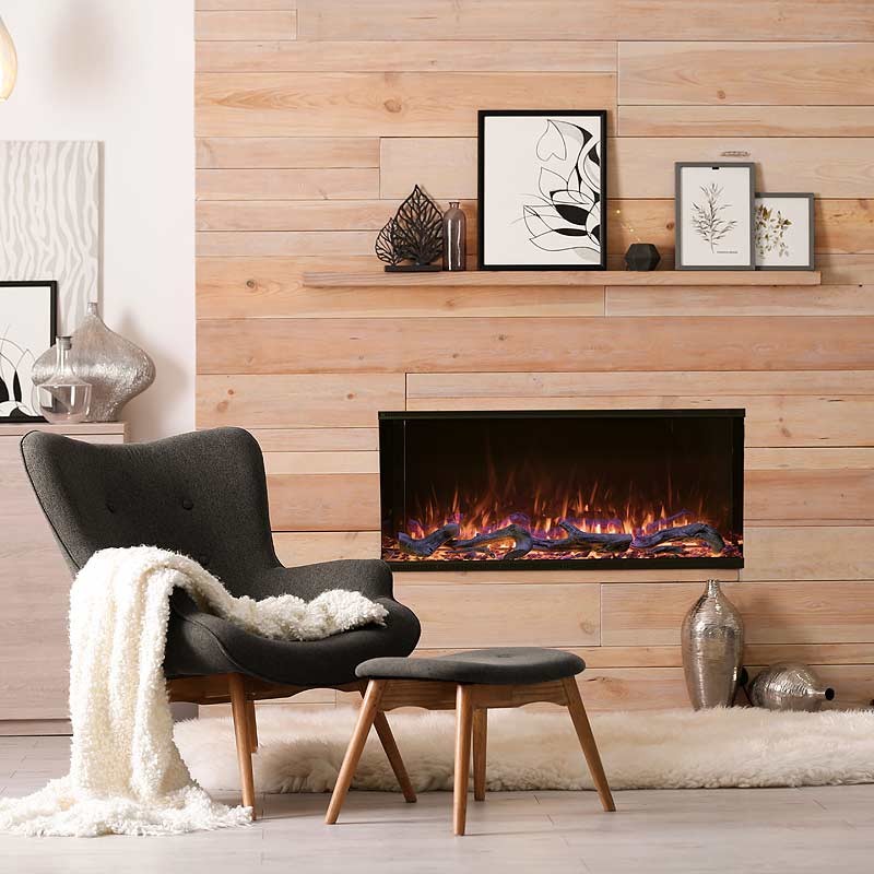 W tym modelu możesz swobodnie regulować kolor oraz natężenie światła w trzech strefach (płomienie, spód paleniska oraz oświetlenie polan). Do zestawu dołączony jest wygodny pilot zdalnego sterowania oraz bezprzewodowy naścienny kontroler. Naturalny bursztynowy odcień? A może żywy turkus? Wybierz kolor ognia, który najlepiej wpisze się w Twoje gusta. Kominek ASTRO oferuje płynną regulację barwy światła co daje nieskończoną liczbę kombinacji.