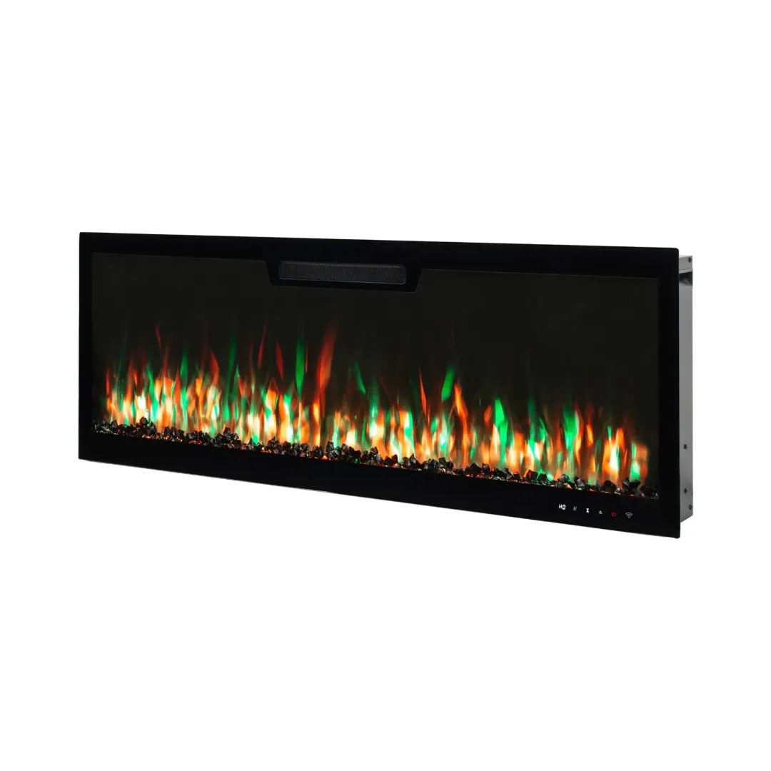 Kominek LED Elite 107 to najnowszy model z eleganckim, czarnym, szklanym frontem, który doskonale wpasuje się w każde wnętrze. Jego minimalistyczny design sprawia, że świetnie komponuje się zarówno z nowoczesnym, jak i klasycznym wystrojem. Dzięki niewielkiej głębokości jest niezwykle praktyczny. Urządzenie oferuje aż 10 wariantów kolorystycznych płomienia i paleniska, co pozwala na uzyskanie różnych efektów, nie tylko imitacji palącego się drewna. Dodatkowo, wbudowany głośnik odtwarza realistyczny dźwięk ognia, a wygodna obsługa z poziomu smartfona podnosi komfort użytkowania.