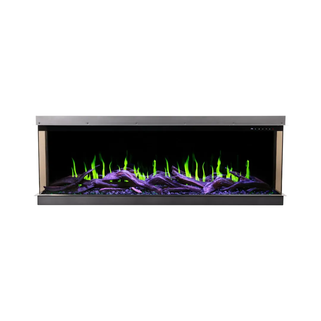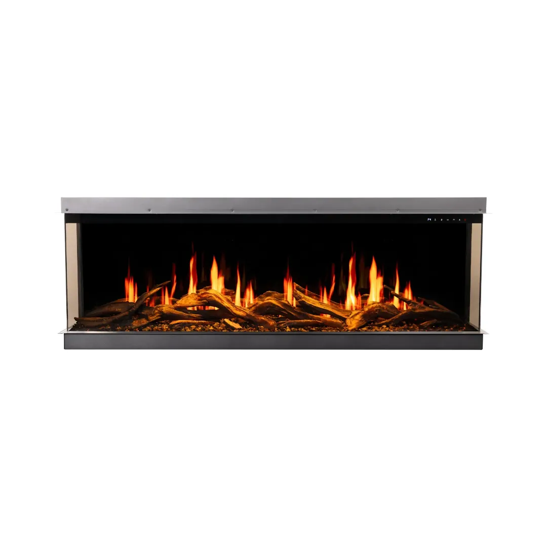 Kominek LED Gold 152 to unikalny wkład, który zachwyca swoją trójstronną konstrukcją, dzięki której prezentuje się wyjątkowo elegancko w otwartej zabudowie. Kominek wyposażony jest w technologię Aflamo Premium, która tworzy efekt ognia niemal nie do odróżnienia od prawdziwego ognia. Ten model oferuje trzy style płomienia oraz sześć kolorów do wyboru, co pozwala na pełne dopasowanie do preferencji użytkownika. Dodatkowo, kominek umożliwia regulację podświetlenia paleniska, oferując 10 różnych kolorów. Te realistyczne efekty wprowadzają ciepłą i przytulną atmosferę, łącząc nowoczesność z elegancją, doskonale komponując się z każdym wnętrzem. Półprzezroczyste polana tworzą wrażenie żarzącego się drewna, co dodatkowo zwiększa autentyczność wizualną kominka. Dodatkowo, wbudowany głośnik oraz możliwość sterowania za pomocą aplikacji mobilnej sprawiają, że model ten łączy nowoczesność z komfortem użytkowania.