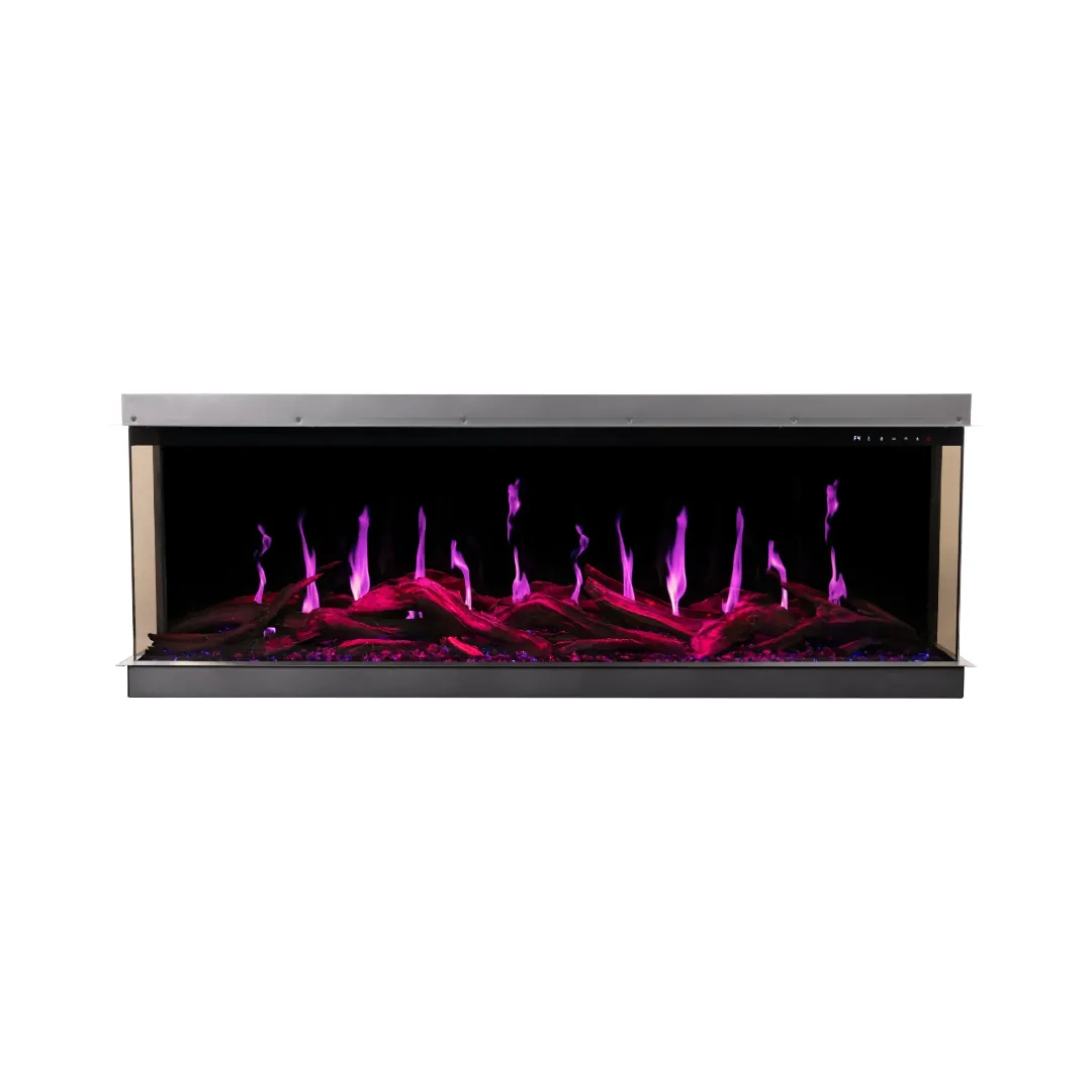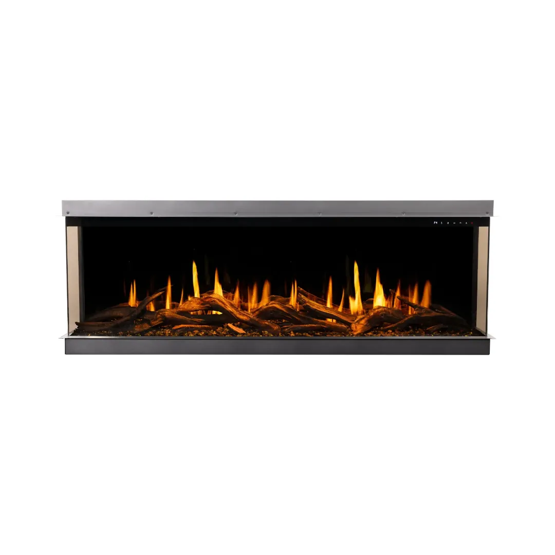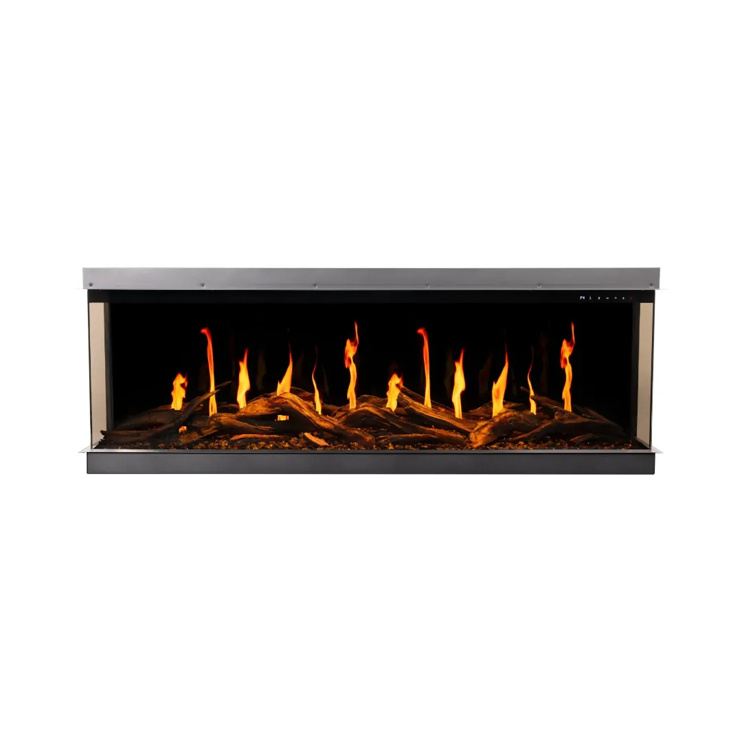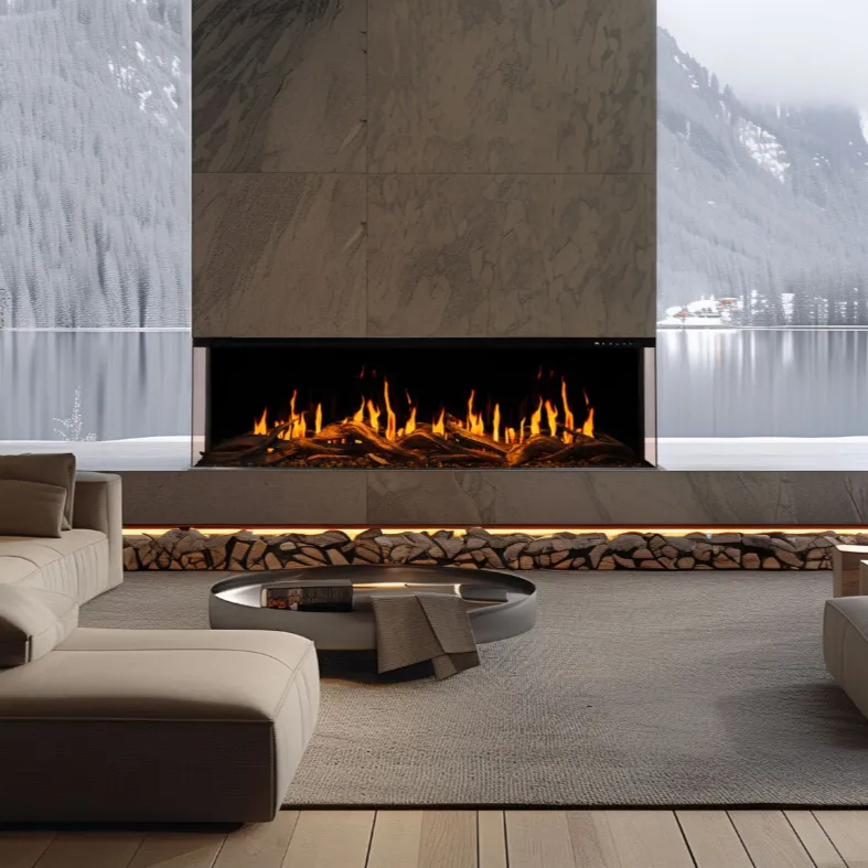 Kominek LED Gold 74 to unikalny wkład, który zachwyca swoją trójstronną konstrukcją, dzięki której prezentuje się wyjątkowo elegancko w otwartej zabudowie. Kominek wyposażony jest w technologię Aflamo Premium, która tworzy efekt ognia niemal nie do odróżnienia od prawdziwego ognia. Ten model oferuje trzy style płomienia oraz sześć kolorów do wyboru, co pozwala na pełne dopasowanie do preferencji użytkownika. Dodatkowo, kominek umożliwia regulację podświetlenia paleniska, oferując 10 różnych kolorów. Te realistyczne efekty wprowadzają ciepłą i przytulną atmosferę, łącząc nowoczesność z elegancją, doskonale komponując się z każdym wnętrzem. Półprzezroczyste polana tworzą wrażenie żarzącego się drewna, co dodatkowo zwiększa autentyczność wizualną kominka. Dodatkowo, wbudowany głośnik oraz możliwość sterowania za pomocą aplikacji mobilnej sprawiają, że model ten łączy nowoczesność z komfortem użytkowania.