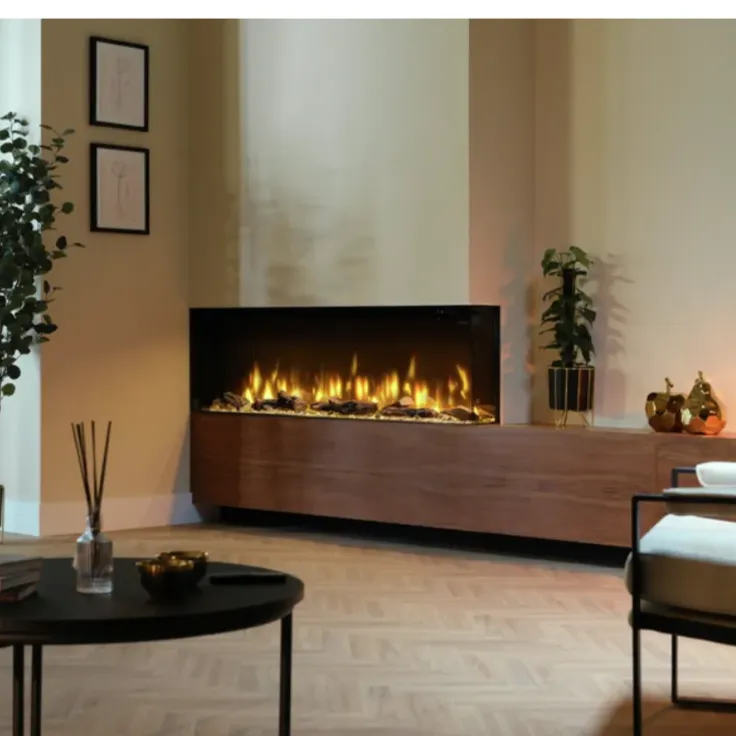 Ignite Bold to doskonały sposób na wprowadzenie do wnętrza wyjątkowej atmosfery płonącego ognia! Urządzenie zapewnia zachwycający widok tańczących w palenisku płomieni, które hipnotyzują swoim realistycznym efektem. Kominek można zamontować w konfiguracji z jednym, dwoma lub trzema widokami na palenisko. Wysokiej jakości przyciemniana szyba gwarantuje wyraźny obraz płomieni, a lustrzana tylna ściana optycznie powiększa wnętrze paleniska. W zestawie znajdziesz także dekoracyjne polana oraz szklany grys, które dodają całości elegancji.