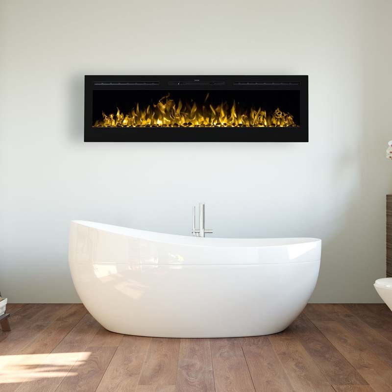 Pilot sterowania umożliwia wygodne użytkowanie na odległość. Zmieniaj ustawienia bez wstawania z kanapy. Wyłącznik czasowy automatycznie wyłączy kominek po ustawionym przez Ciebie czasie – jeśli zaśniesz to nie musisz martwić się, że kominek będzie działał całą noc. Funkcja grzania z wydmuchem pozwala błyskawicznie ogrzać pomieszczenie i utrzymać komfortową temperaturę. Nie wymaga dodatkowej wentylacji. Nie trzeba wietrzyć pomieszczenia gdyż kominek elektryczny nie generuje żadnych spalin. Widok płomienia jest niezależny od funkcji grzania co pozwala na korzystanie z kominka przez cały rok, nawet w upalne dni.