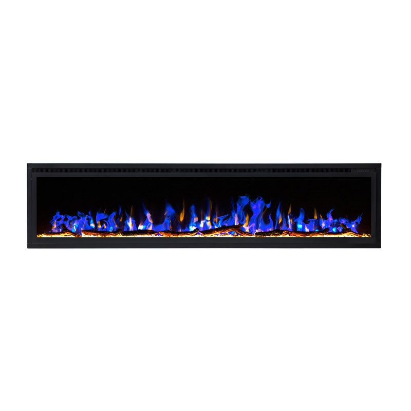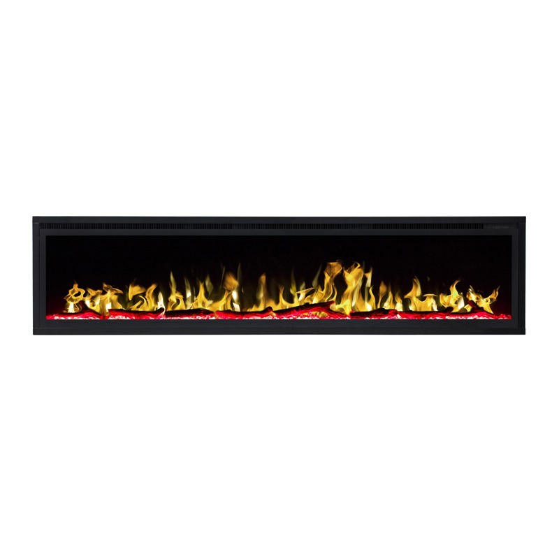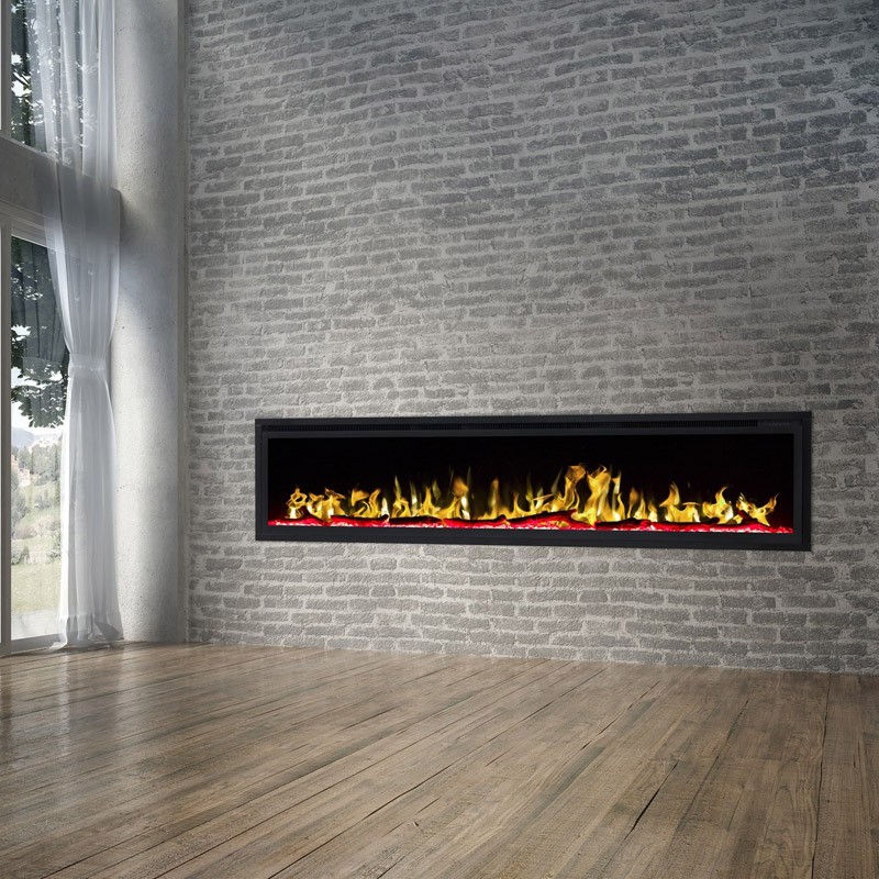 Jednym z kluczowych atutów tego kominka Aflamo jest możliwość pełnej personalizacji efektu ognia, co pozwala dostosować wygląd paleniska do własnych upodobań i nastroju. W prosty i intuicyjny sposób możesz regulować barwę płomieni oraz ich jasność, tworząc idealną atmosferę na każdą okazję. Dodatkowo kominek oferuje funkcję zmiany kolorów podświetlenia paleniska, co daje jeszcze większe możliwości aranżacyjne. Możesz wybrać spośród subtelnych, ciepłych odcieni, które wprowadzą do wnętrza przytulność, lub postawić na nowoczesne, wyraziste barwy, takie jak fiolet czy niebieski, nadając przestrzeni wyjątkowy charakter.
