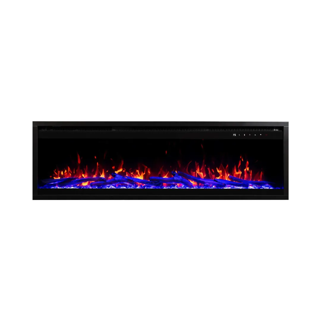 Ten model pozwala na pełne sterowanie za pomocą wielofunkcyjnego pilota, który jest dołączony do zestawu. Dzięki temu nie musisz przerywać odpoczynku, by dostosować ustawienia kominka. Pilot pozwala na zmianę ustawień obrazu ognia oraz regulację temperatury, dostosowując je do aktualnych potrzeb. Jeżeli wolisz, możesz także skorzystać z manualnego sterowania bezpośrednio z poziomu obudowy kominka. To proste rozwiązanie, które sprawia, że korzystanie z kominka jest wygodne i bezproblemowe.