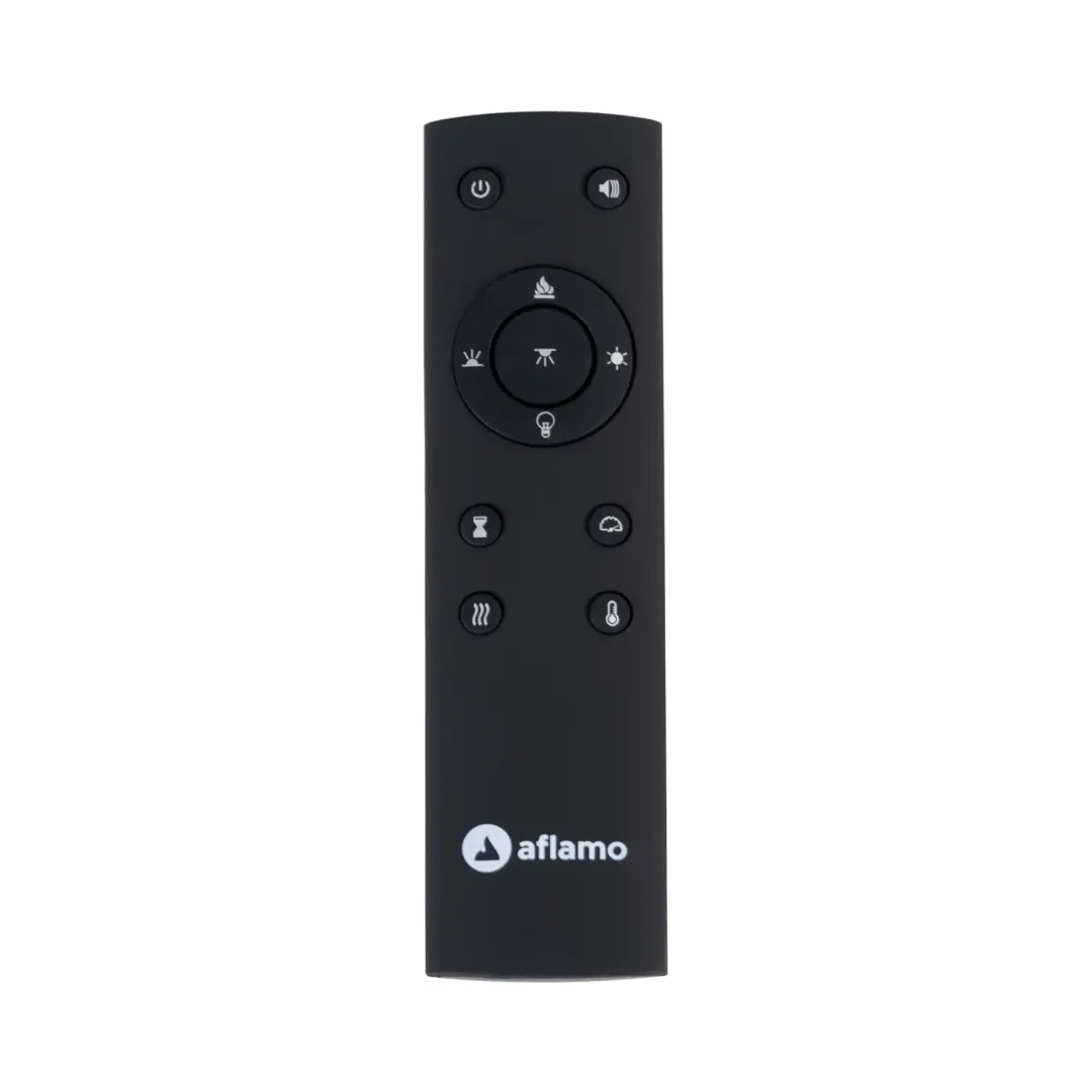 Ten nowoczesny kominek elektryczny można sterować za pomocą aplikacji mobilnej. Aplikacja działa na urządzeniach z systemem Android i iOS, umożliwiając pełną kontrolę kominka bezpośrednio z telefonu. Można ją pobrać w sklepach Google Play i Apple Store, wyszukując „AFLAMO”. Oczywiście, wszystkie funkcje są również dostępne poprzez intuicyjny panel na obudowie.