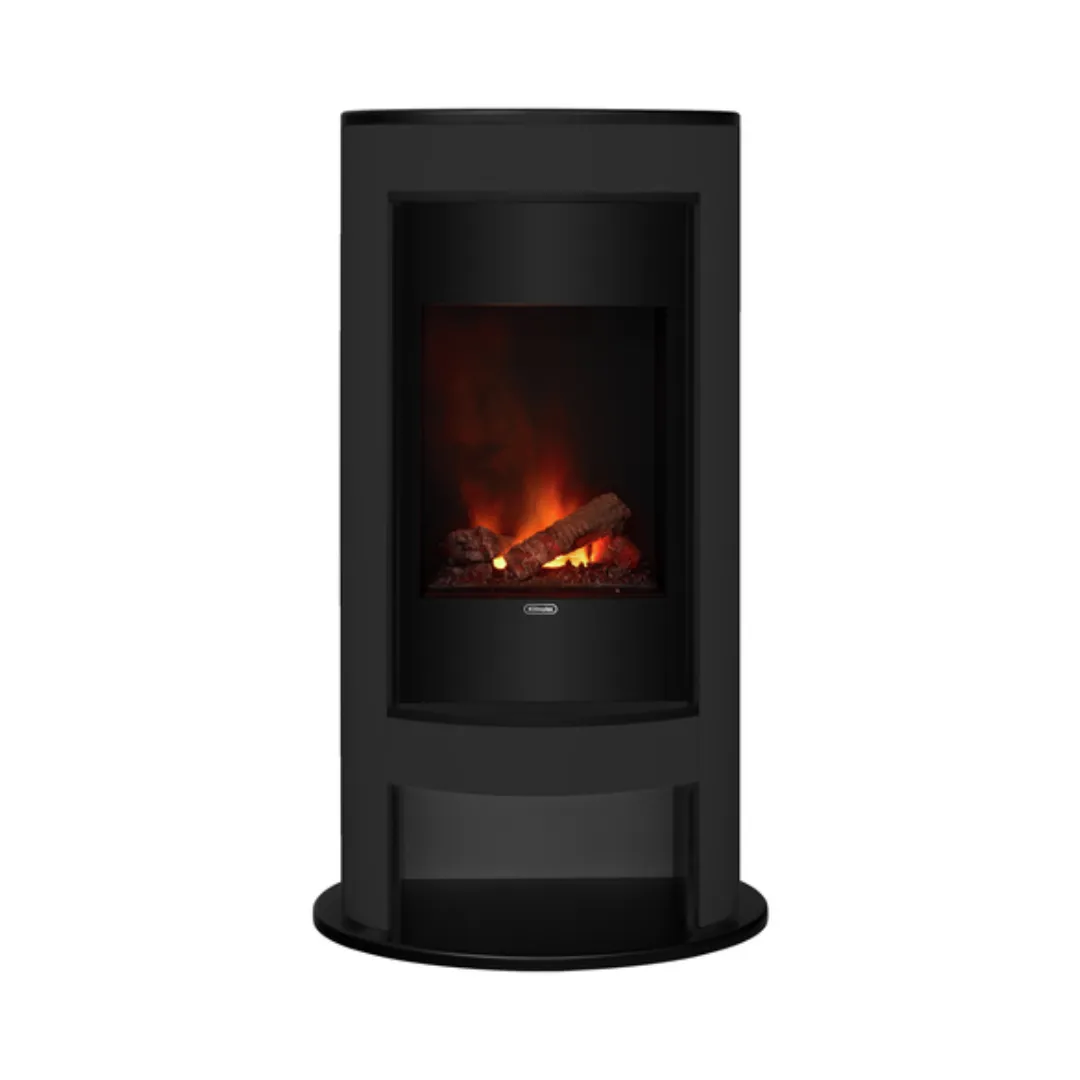 Model Verdi Black to stylowy, zamknięty kominek elektryczny osadzony w czarnej, owalnej obudowie. Jego nowoczesna forma wyróżnia się smukłą sylwetką oraz imponującą wysokością sięgającą niemal 150 cm, co sprawia, że idealnie komponuje się z aranżacjami wnętrz inspirowanymi stylem skandynawskim. To urządzenie nie tylko przyciąga uwagę jako centralny element dekoracyjny, ale także wprowadza wyjątkowy klimat do przestrzeni. Producent Dimplex zastosował w tym modelu zaawansowaną technologię Optimyst, która generuje niezwykle realistyczne płomienie, umożliwiając cieszenie się ciepłem ognia bez ryzyka poparzeń czy innych zagrożeń. Dodatkowo, dzięki funkcji grzewczej, kominek pozwala na relaks w przytulnej, domowej atmosferze, oferując dwa tryby grzania wraz z termostatem. Maksymalne zużycie energii wynosi 2000 W.