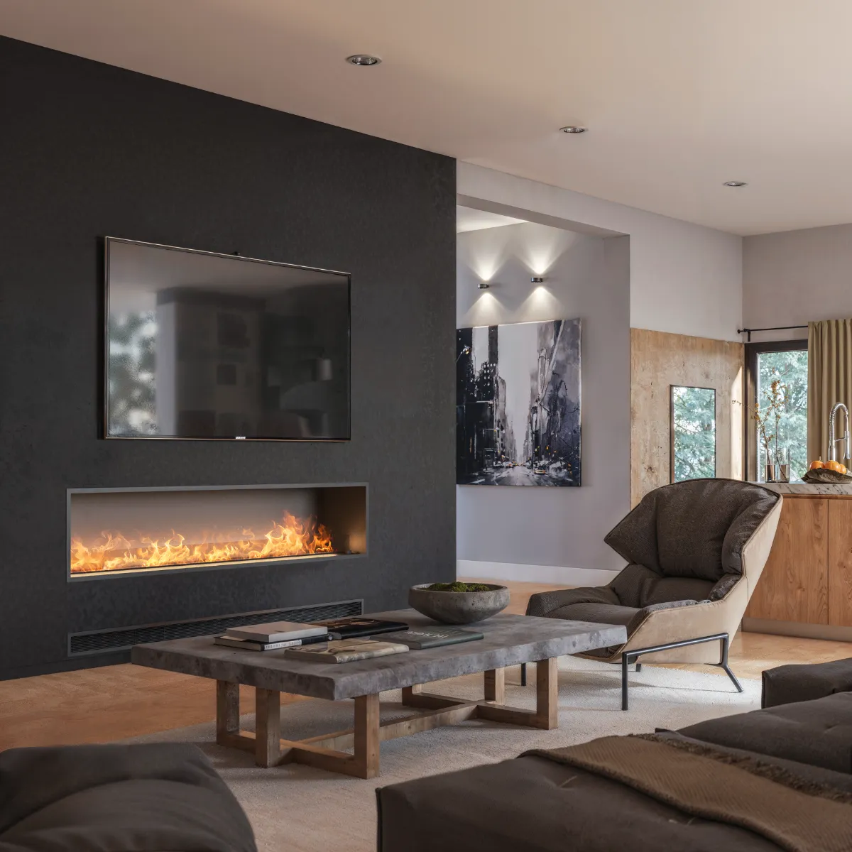 Invapo to doskonały wybór dla osób, które cenią komfort oraz bezpieczeństwo w swoim domu. Kominek parowy nie generuje prawdziwego ognia, a jedynie iluzję płomieni, które lekko falują. Dzięki temu eliminujemy całkowicie ryzyko pożaru czy innych niebezpiecznych sytuacji. To szczególnie istotne w domach, gdzie mieszkają dzieci lub zwierzęta – możesz mieć pewność, że ich bezpieczeństwo jest zapewnione, nawet gdy bawią się w pobliżu kominka. Dodatkowo, wybierając kominek z serii Invapo nie musisz martwić się o nieprzyjemne skutki użytkowania, ponieważ urządzenie nie wytwarza dymu, sadzy, popiołu ani szkodliwych gazów. To sprawia, że korzystanie z niego jest wygodne, czyste i bezpieczne przez cały czas.