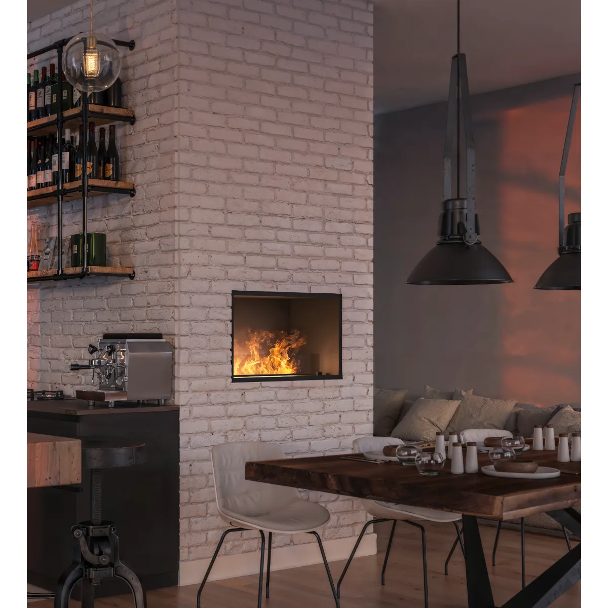 Inside Invapo 800 to kominek na parę wodną, który łączy nowoczesny, elegancki design z kompaktowymi wymiarami oraz zaawansowaną technologią Optimyst. Firma Infire stworzyła urządzenie, które jest bezpieczne, łatwe w obsłudze i wygodne w codziennym użytkowaniu. Działa na prąd oraz wodę, co czyni go ekologiczną alternatywą dla tradycyjnych kominków opalanych drewnem. Dzięki technologii możesz cieszyć się atmosferą ciepła i bezpieczeństwa, bez ryzyka poparzeń czy innych zagrożeń związanych z ogniem.