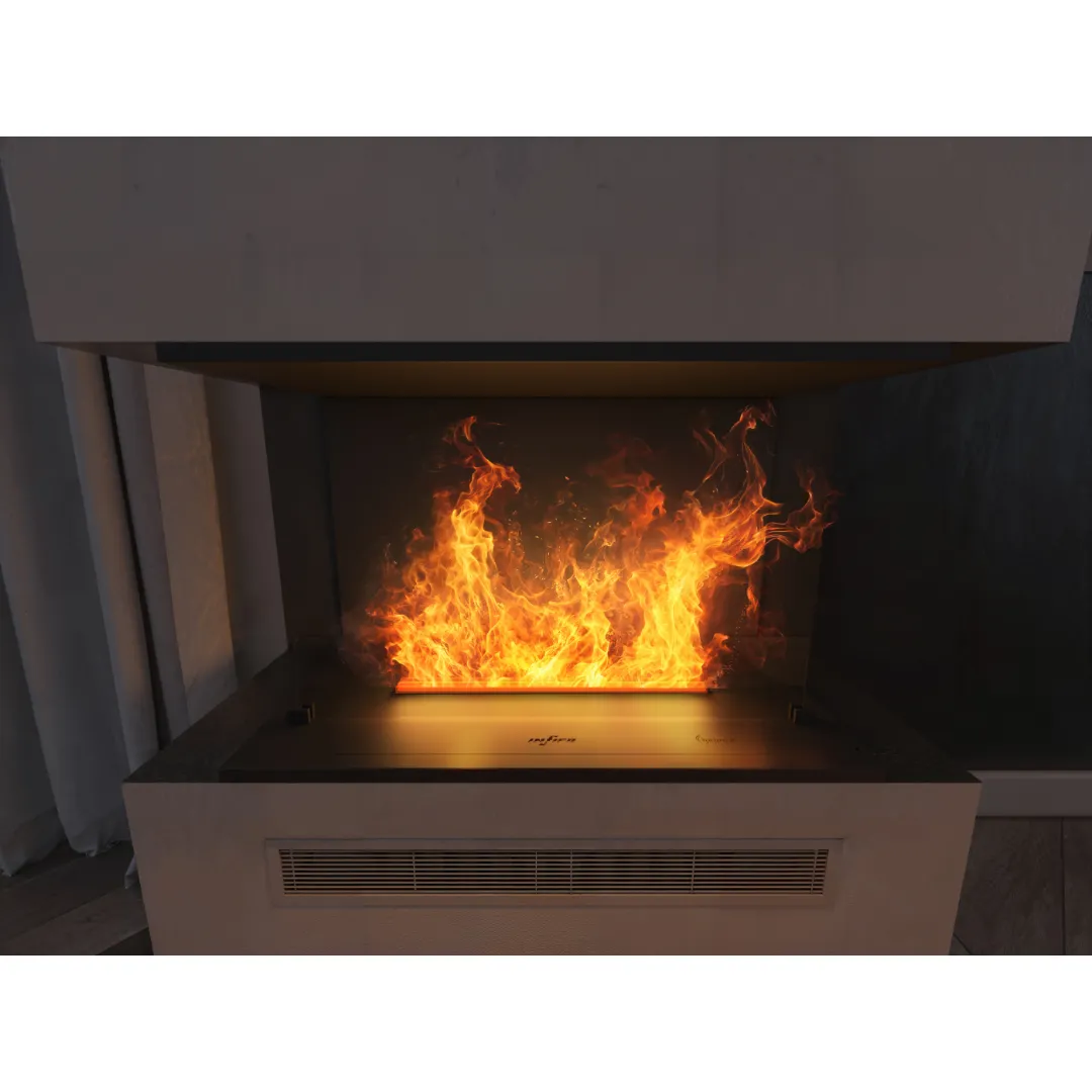 Inside Invapo C800 to kominek na parę wodną, który łączy nowoczesny, elegancki design z kompaktowymi wymiarami oraz zaawansowaną technologią Optimyst. Firma Infire stworzyła urządzenie, które jest bezpieczne, łatwe w obsłudze i wygodne w codziennym użytkowaniu. Działa na prąd oraz wodę, co czyni go ekologiczną alternatywą dla tradycyjnych kominków opalanych drewnem. Dzięki technologii możesz cieszyć się atmosferą ciepła i bezpieczeństwa, bez ryzyka poparzeń czy innych zagrożeń związanych z ogniem.