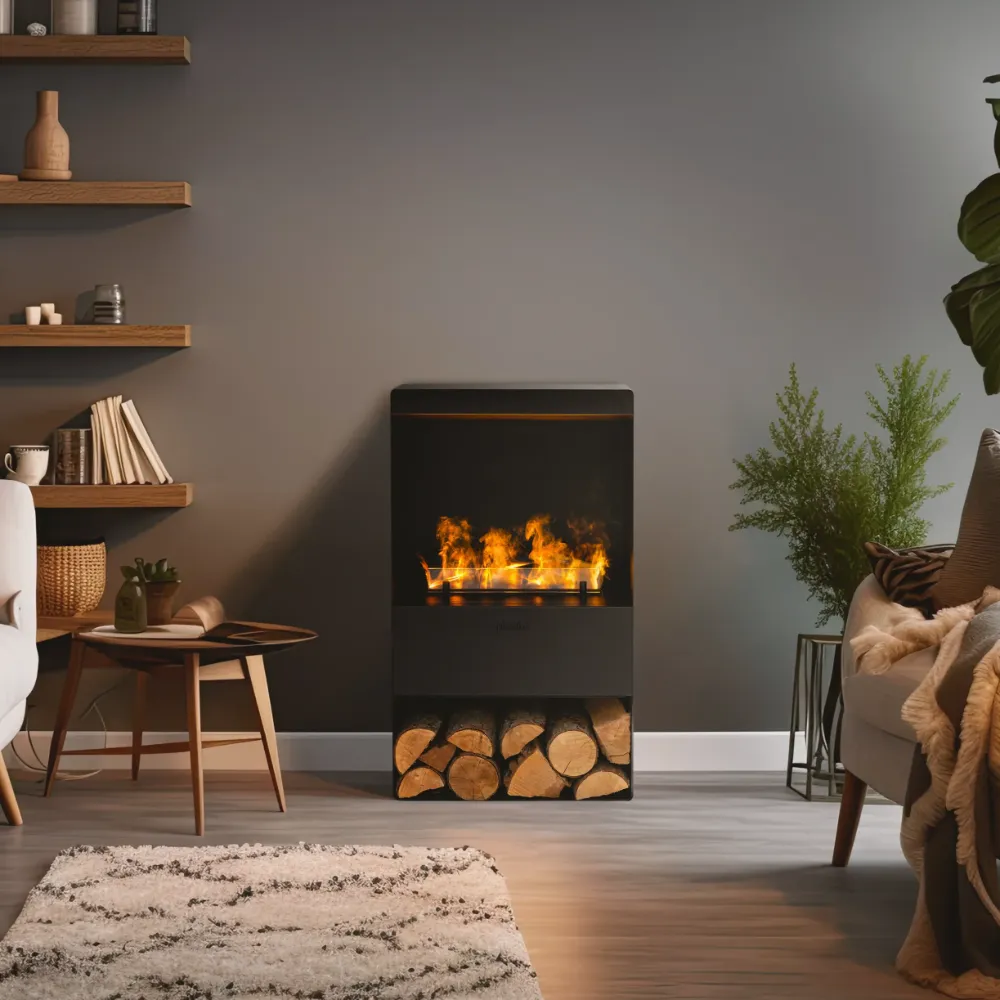 Planika Steamy to innowacyjny kominek na parę wodną, który dzięki technologii OPTIMYST® imituje realistyczny efekt płomieni. Jego kompaktowy design sprawia, że doskonale sprawdza się w mniejszych przestrzeniach. Wyposażony w pilot zdalnego sterowania Cloudy nie wymaga komina, a jego efekty dźwiękowe przywołują atmosferę tradycyjnego ognia, tworząc przytulne i relaksujące otoczenie.