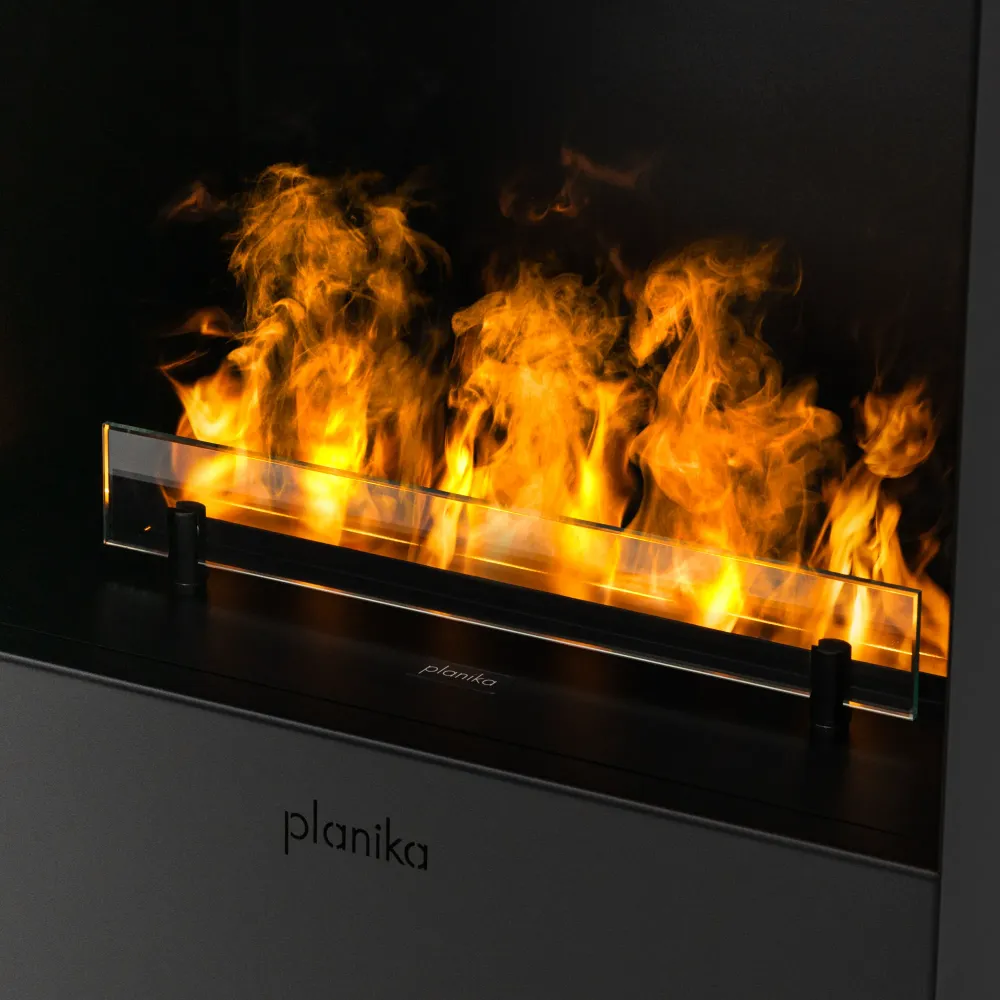 Planika Steamy wykorzystuje zaawansowaną technologię Optimyst, która dzięki ultradźwiękowej atomizacji wody generuje drobne cząsteczki mgły. Te, podświetlane diodami LED, doskonale imitują naturalne płomienie i dym. Efekt wizualny jest tak przekonujący, że trudno go odróżnić od prawdziwego ognia. To rozwiązanie umożliwia cieszenie się atmosferą kominka w sposób bezpieczny, czysty i przyjazny dla środowiska. Odkryj kominki na parę wodną Planika i zachwyć się magią ognia powstałego z wody!