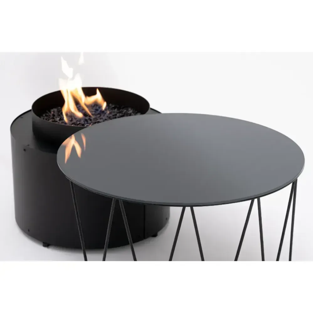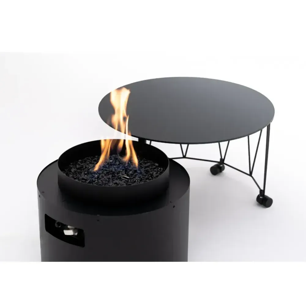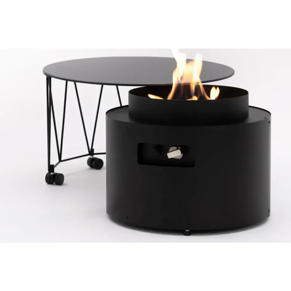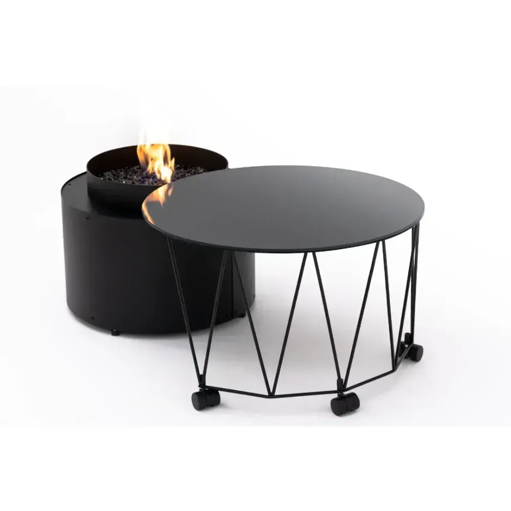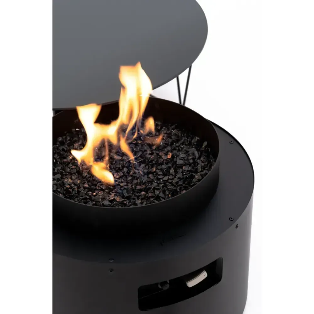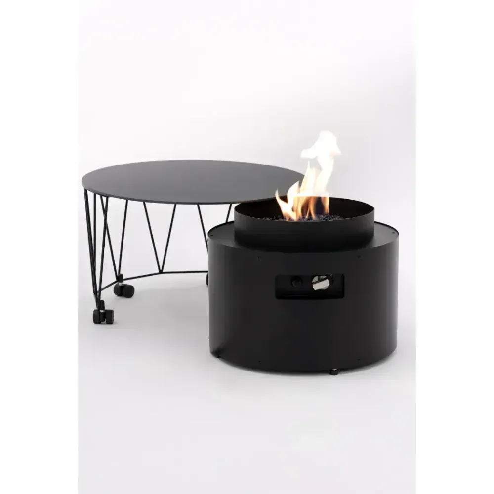 Fire Pit Table Drum to urządzenie, które zachwyca swoją wszechstronnością. To stylowe połączenie gazowego kominka i praktycznego stolika, doskonale nadające się do użytkowania na tarasie lub w ogrodzie. Kominek zasilany gazem, o mocy grzewczej w zakresie od 5 do 8,0 kW, zapewnia długie godziny komfortu cieplnego i wyjątkowego nastroju. Palenisko wypełnione jest dekoracyjnym grysem szklanym, który nadaje mu elegancji i sprawia, że staje się centralnym elementem każdego otoczenia.
