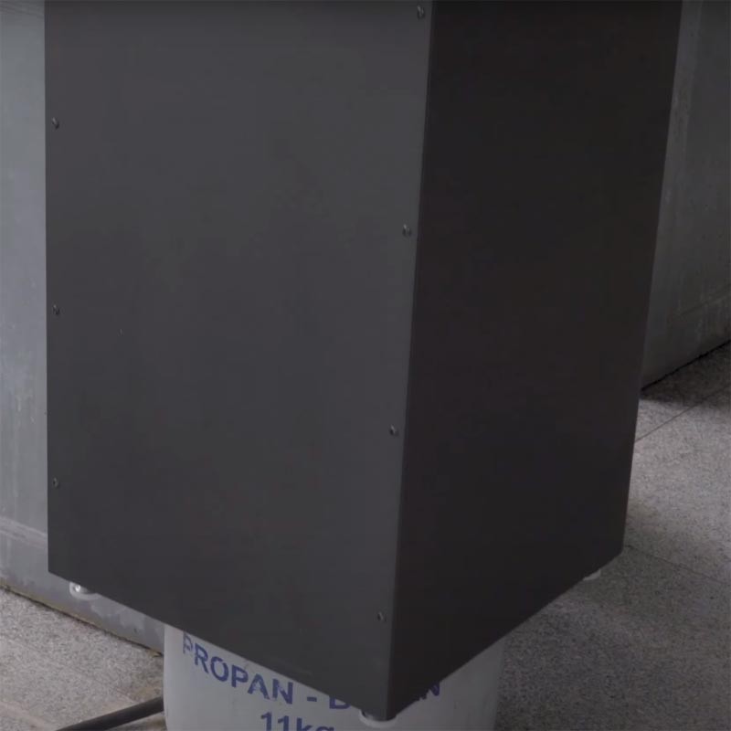 Elegancka, stalowa osłona na butlę LPG malowana proszkowo w kolorze czarnym. Obudowa dedykowana do najpopularniejszej w Polsce butli LPG o pojemności 11 kg. Ustawiona na czterech nóżkach obudowa posiada górną rewizję, dzięki której w szybki sposób można dostać się do zaworu butli gazowej.