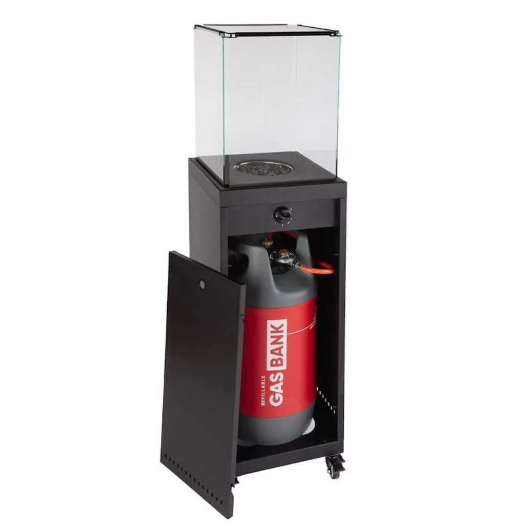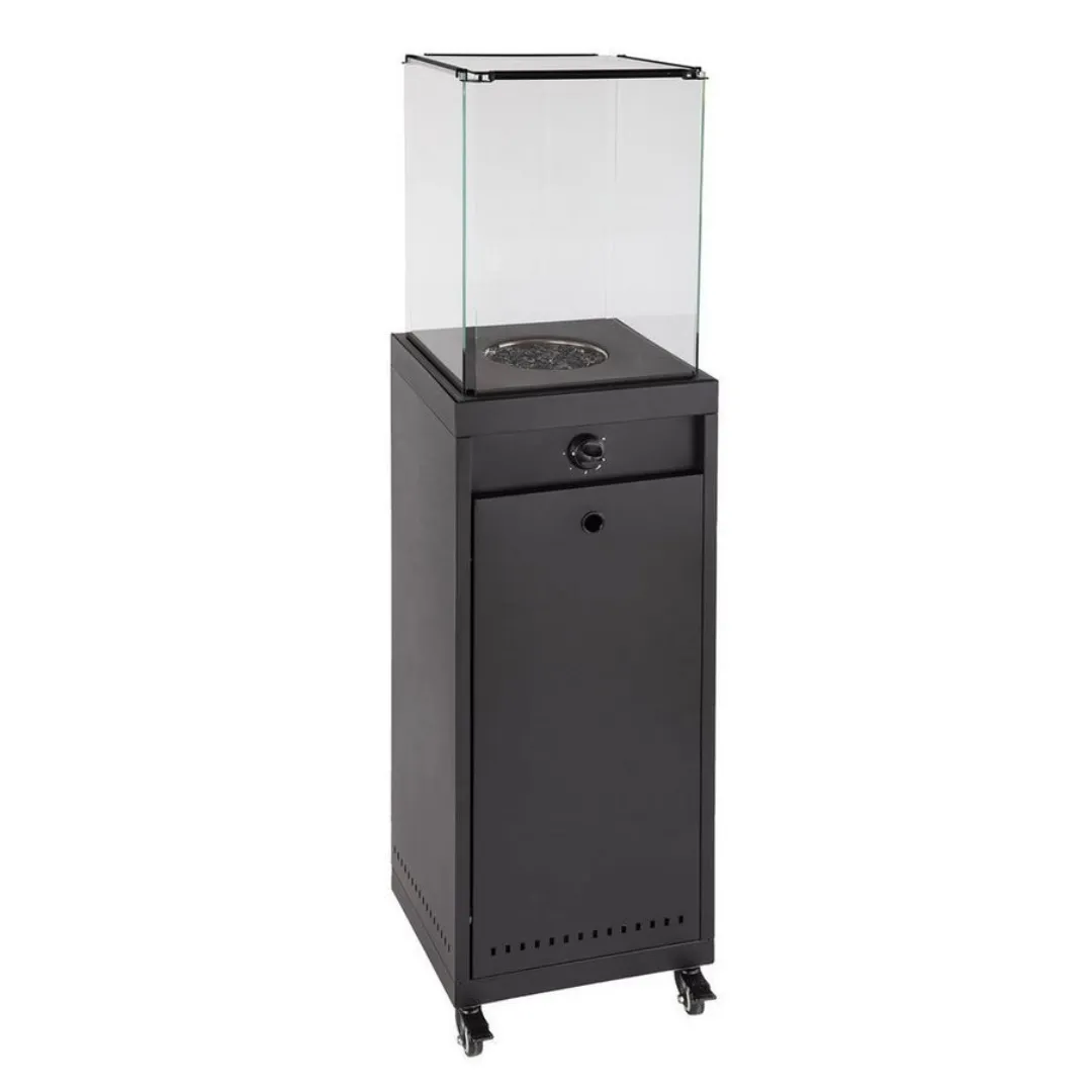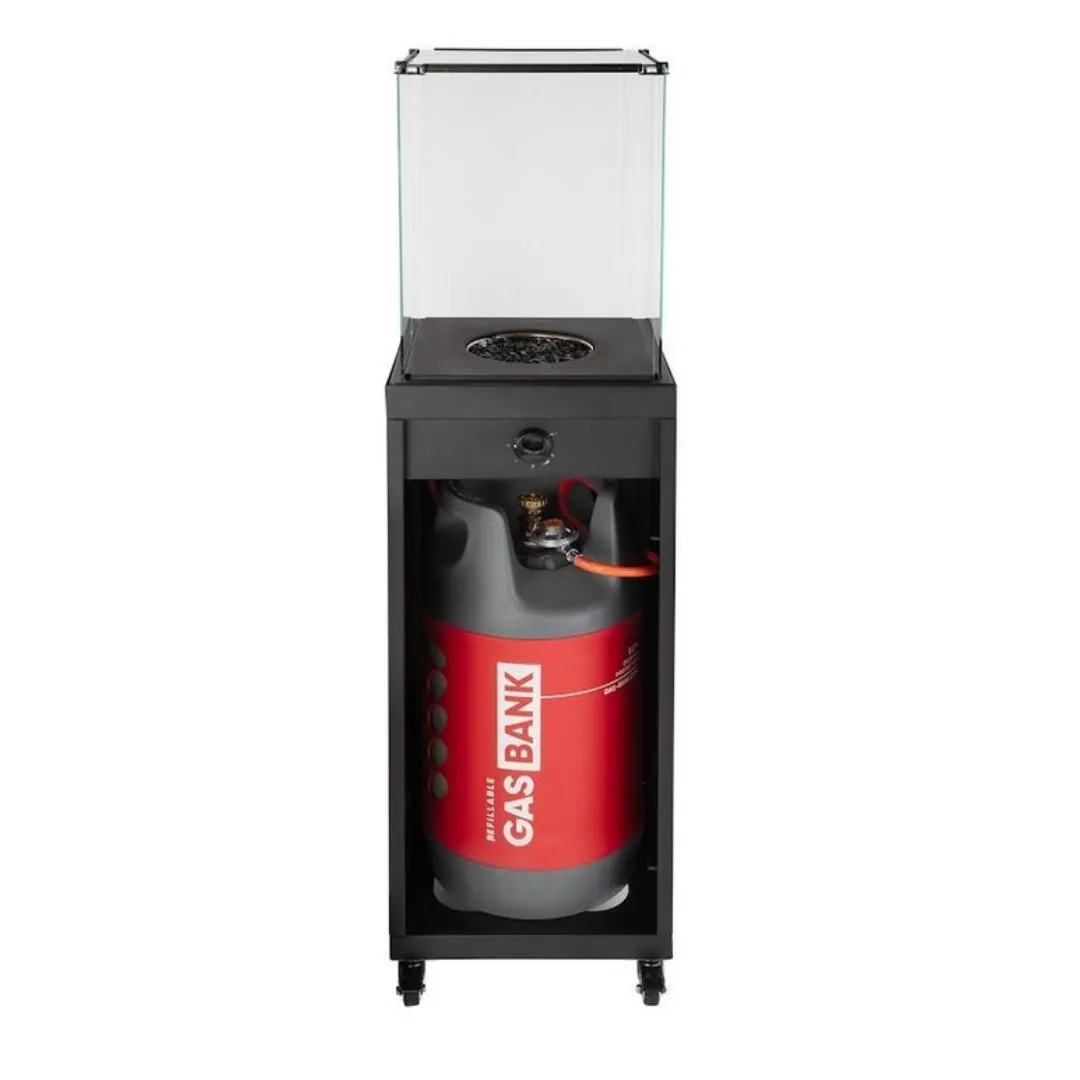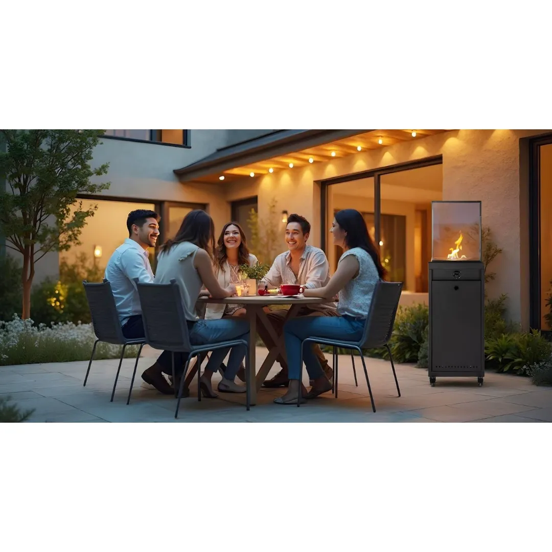 APO to w pełni bezpieczny ogrzewacz, który posiada certyfikat CE oraz system automatycznego wyłączania w przypadku przechylenia, zapewniając użytkownikom maksymalną ochronę. Wyposażony w innowacyjny palnik z funkcją mieszania powietrza, urządzenie optymalizuje zużycie gazu, co przekłada się na niższe koszty eksploatacji i większą wydajność. Dzięki czterem skrętnym kółkom ten kominek ogrodowy jest całkowicie mobilny, co pozwala na łatwe przemieszczanie go w dowolne miejsce, a wbudowany schowek na butlę gazową nie tylko poprawia funkcjonalność, ale także wpływa na estetyczny wygląd urządzenia.