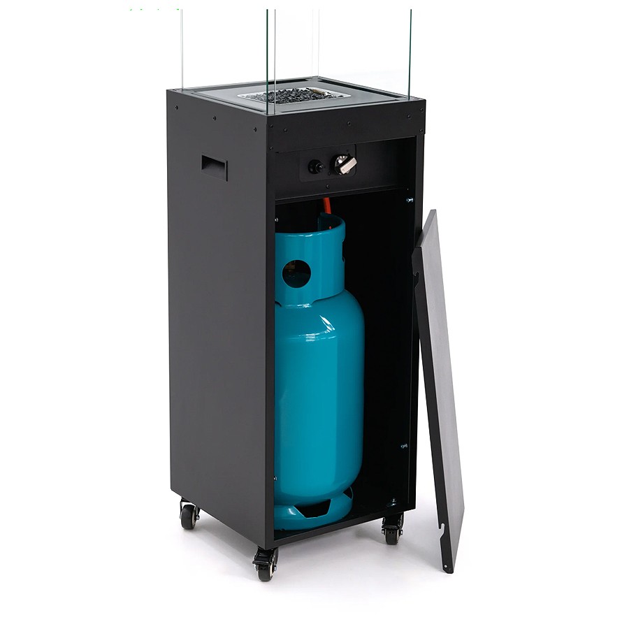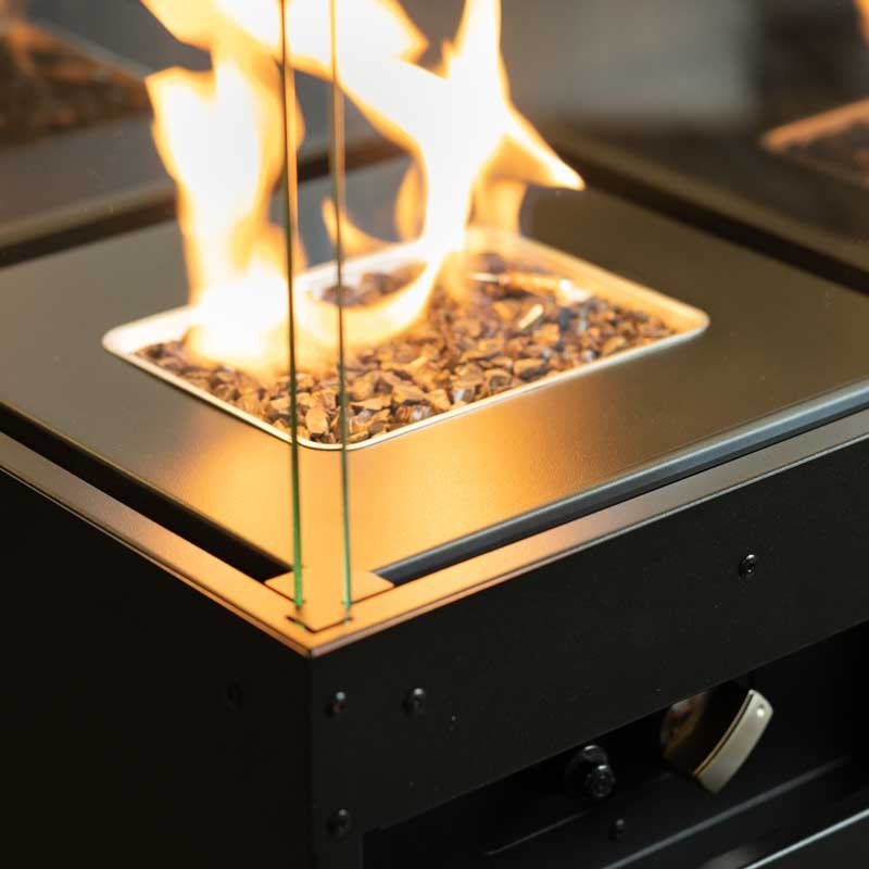 Ten wysokiej jakości, zewnętrzny kominek gazowy to absolutny bestseller. Dzięki niemu niezależnie od wieczornych temperatur spędzisz czas ze znajomymi w komfortowej atmosferze. Faro tworzy niesamowitą atmosferę, która nie tylko sprzyja relaksowi, ale również podnosi estetykę ogrodu i tarasu. Kominek jest zaprojektowany w taki sposób, że można go ustawić w dowolnym miejscu, a zasilany jest 11-kilogramową butlą gazową, którą wygodnie umieszczasz w szafce pod paleniskiem. Dzięki wysokiej wydajności, kominek zapewnia do 55 godzin palenia na jednej butli, a jego maksymalna moc grzewcza wynosi 8 kW. Konstrukcja ogrzewacza jest niezwykle elegancka i stanowi ciekawą, przyciągającą uwagę dekorację. Atrakcyjny wygląd oraz przyjemne ciepło sprawią, że Twój ogród będzie zawsze pełny zrelaksowanych gości zarówno w wiosenne, letnie, jak i jesienne wieczory.