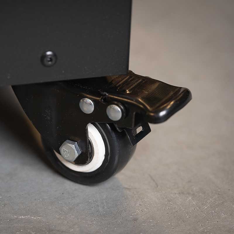 - Wbudowane kółka z hamulcami zapewniają pełną i łatwą mobilność ogrzewacza