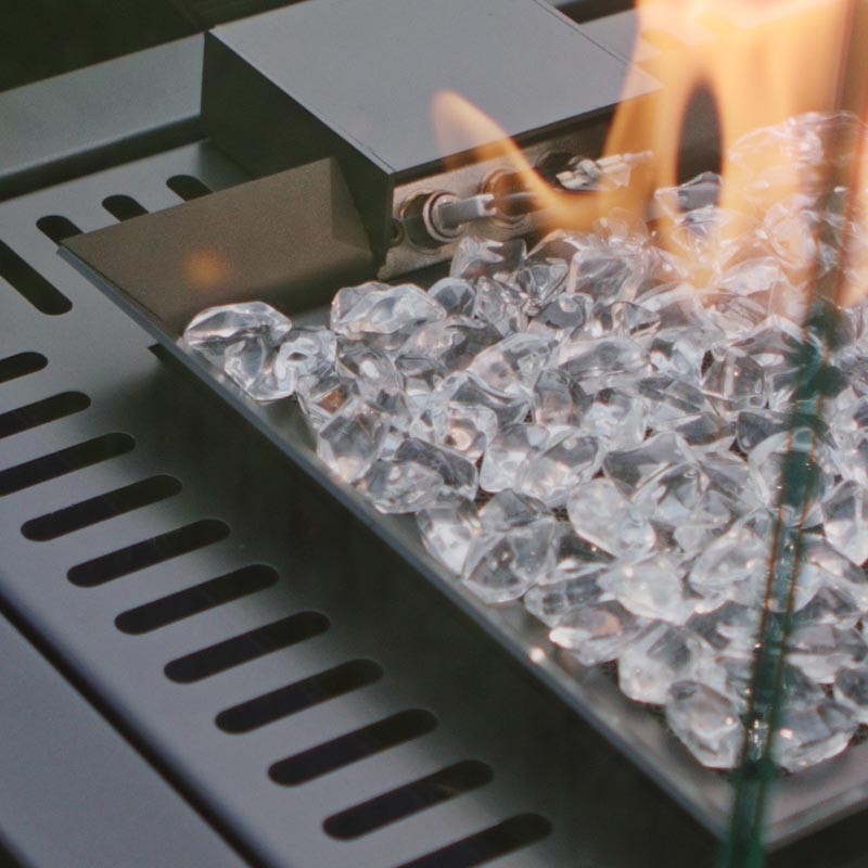 Kominek gazowy Patio Automatyczny sterowany jest automatycznie za pośrednictwem eleganckiego, minimalistycznego pilota. Urządzenie uruchamiane jest za pośrednictwem jednego/ dwóch przycisków. Wysokość płomienia płynnie regulujemy za pomocą dwóch osobnych pól, przy czym istnieje również możliwość szybkiego ustawienia minimalnego bądź maksymalnego płomienia. Wersję automatyczną Patio Automatyczny można również indywidualnie skonfigurować pod kątem czasu pracy bądź dostosować do temperatury otoczenia. Przechylenie bądź przewrócenie urządzenia spowoduje automatyczne odcięcie dopływu gazu przez co kominek natychmiast zgaśnie.
