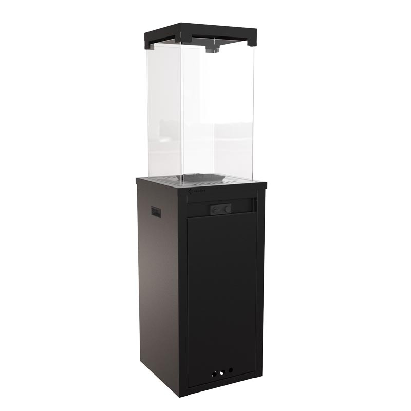 Przemyślana budowa urządzenia wpływa na bezpieczeństwo użytkowania. Butla z gazem ukryta jest w stalowej obudowie. Płomień osłaniają szklane panele (ceramika żaroodporna stosowana również w tradycyjnych wkładach kominkowych), uniemożliwiając bezpośredni dostęp do otwartego ognia. Wbudowany sterownik pozwala na podziwianie gry płomieni pod całkowitą kontrolą. Zawór antyprzechyłowy, w razie przewrócenia urządzenia i czujnik termopary, w razie zdmuchnięcia płomienia automatycznie zatrzymają transport gazu do palnika. Ogrzewacz wyposażony jest w całkowicie bezpieczny i zaawansowany system manualnego sterowania, który chroni przed niekontrolowanym wyciekiem paliwa.