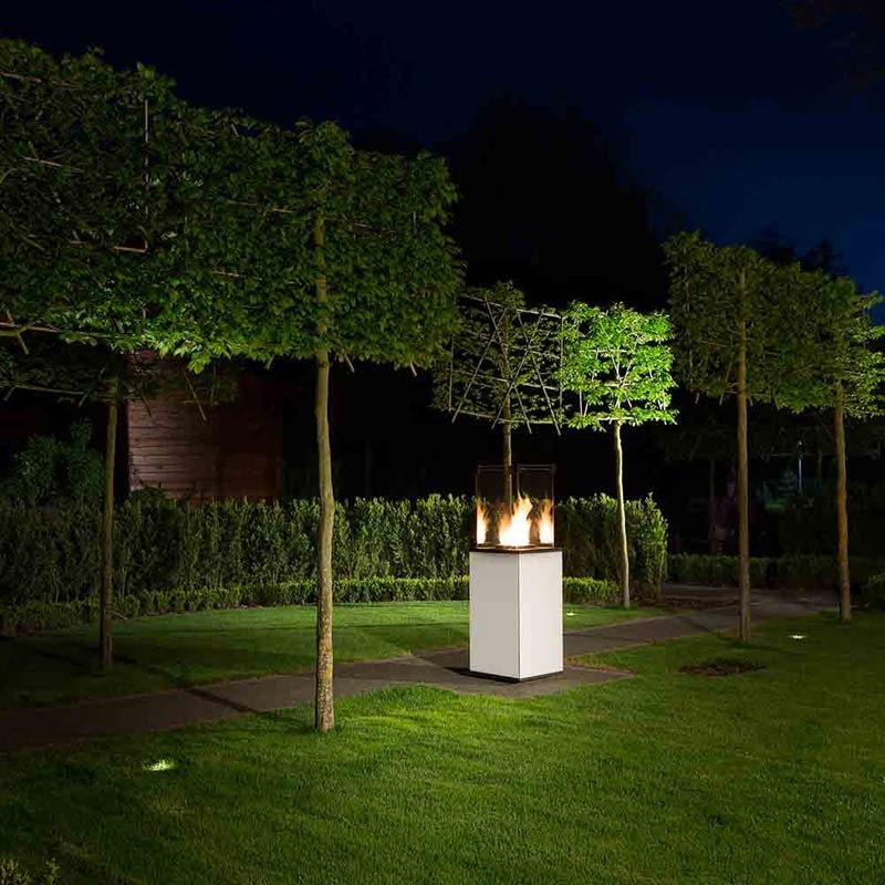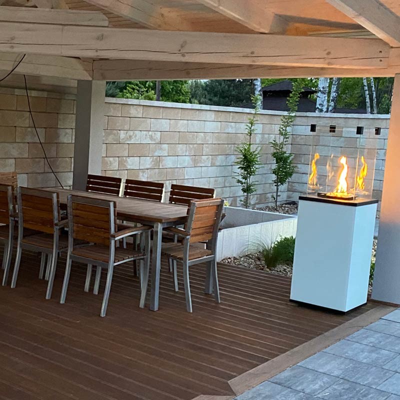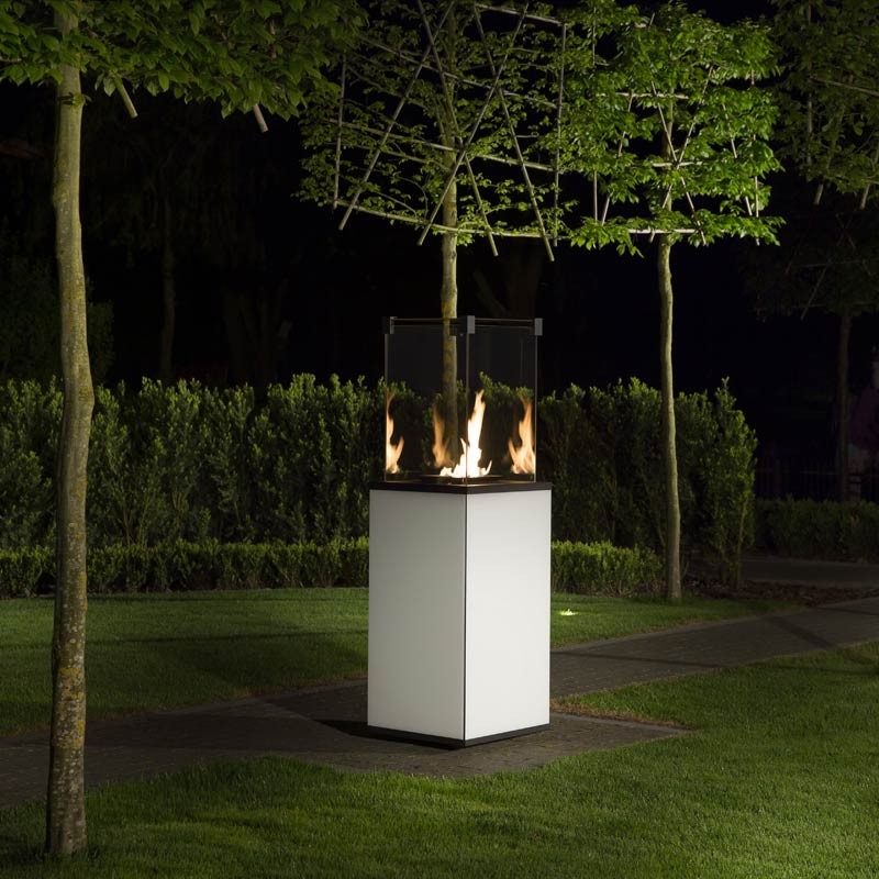 Szklane osłony nie tylko stabilizują płomień, ale również chronią przed bezpośrednim dostępem do ognia i potęgują jego blask. Dzięki bezpiecznemu i wydajnemu palnikowi ogrzewacz nie generuje dymu, przez co szyby nie wymagają kłopotliwego czyszczenia. Dedykowany pokrowiec zapewnia ochronę kominka podczas przechowywania i pomaga utrzymać go w czystości.