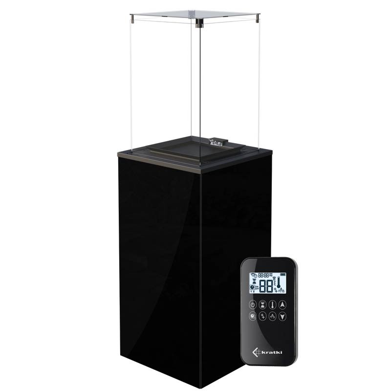 - Kominek gazowy Patio Mini Automatyczny Obudowa Szklana Czarny z palnikiem z pełnym systemem kontroli sterowania gazem uzbrojonym w sterownik MERTIK MAXITROL GV60M1, odbiornik MERTIK MAXITROL B6R-R8U oraz pilot zdalnego sterowania