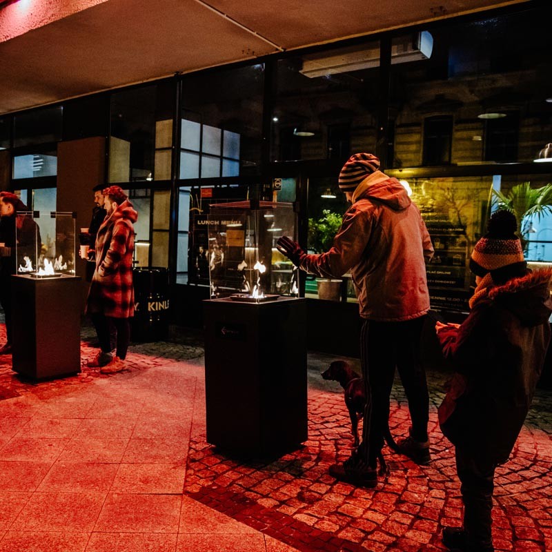 Szklane osłony nie tylko stabilizują płomień, ale również chronią przed bezpośrednim dostępem do ognia i potęgują jego blask. Dzięki bezpiecznemu i wydajnemu palnikowi ogrzewacz nie generuje dymu, przez co szyby nie wymagają kłopotliwego czyszczenia. Dedykowany pokrowiec zapewnia ochronę kominka podczas przechowywania i pomaga utrzymać go w czystości.