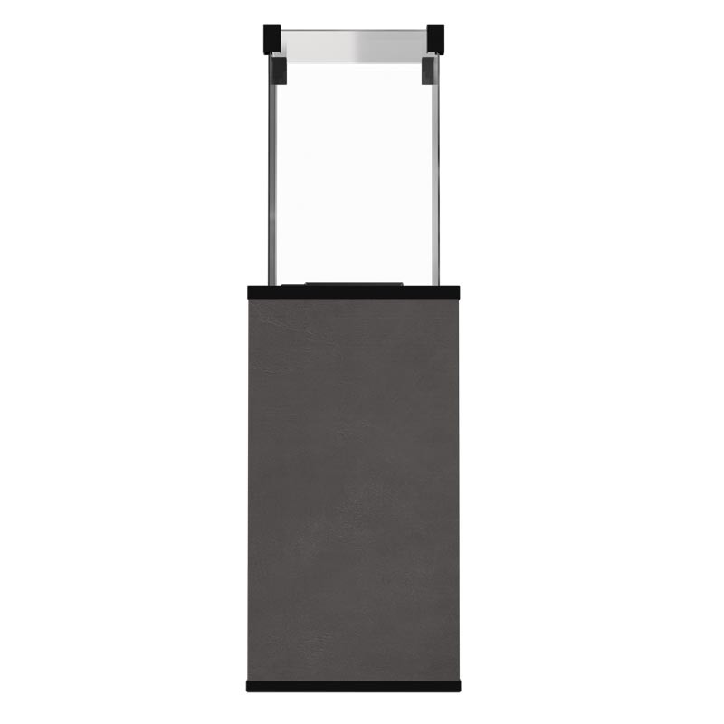- Stalowa obudowa malowana proszkowo w kolorze czarnym, wykończona z trzech stron ozdobnym spiekiem kwarcowym o wybarwieniu Calce Antracite