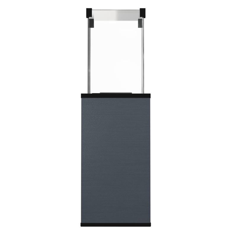 - Stalowa obudowa malowana proszkowo w kolorze czarnym, wykończona z trzech stron ozdobnym spiekiem kwarcowym o wybarwieniu Filo Mercurio