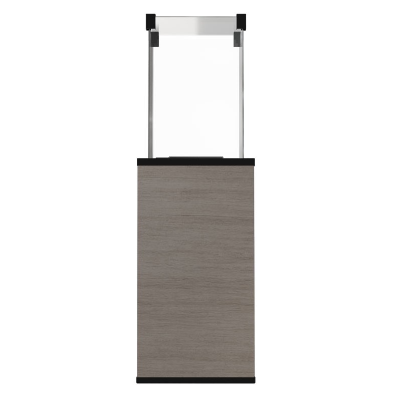 - Stalowa obudowa malowana proszkowo w kolorze czarnym, wykończona z trzech stron ozdobnym spiekiem kwarcowym o wybarwieniu Naturali Ossidiana Vena Grigia