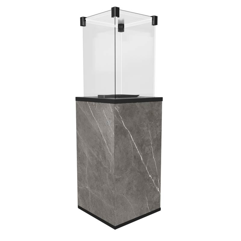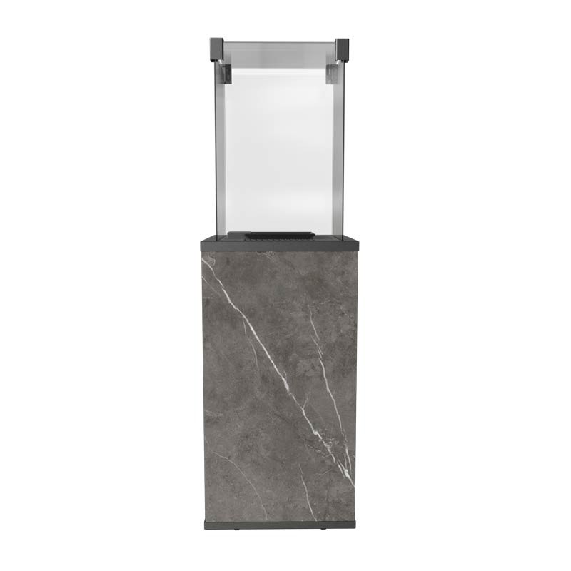 - Stalowa obudowa malowana proszkowo w kolorze czarnym, wykończona z trzech stron ozdobnym spiekiem kwarcowym o wybarwieniu Naturali Pietra Grey