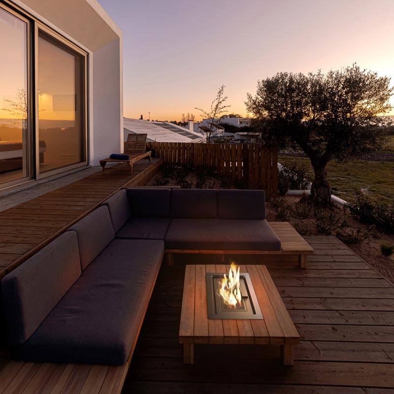 AQF 05 to nowoczesne palenisko gazowe dedykowane do umieszczenia w indywidualnie przygotowanej zabudowie – instalacja możliwa w stołach, blatach i innych ozdobnych obudowach przestrzeni zewnętrznej. Dzięki temu urządzeniu można stworzyć nie tylko oryginalny stół kawowy, ale również inne niepowtarzalne elementy dekoracyjne z funkcją grzewczą, w tym wolnostojące pochodnie czy ogrzewacze tarasowe według indywidualnego projektu.