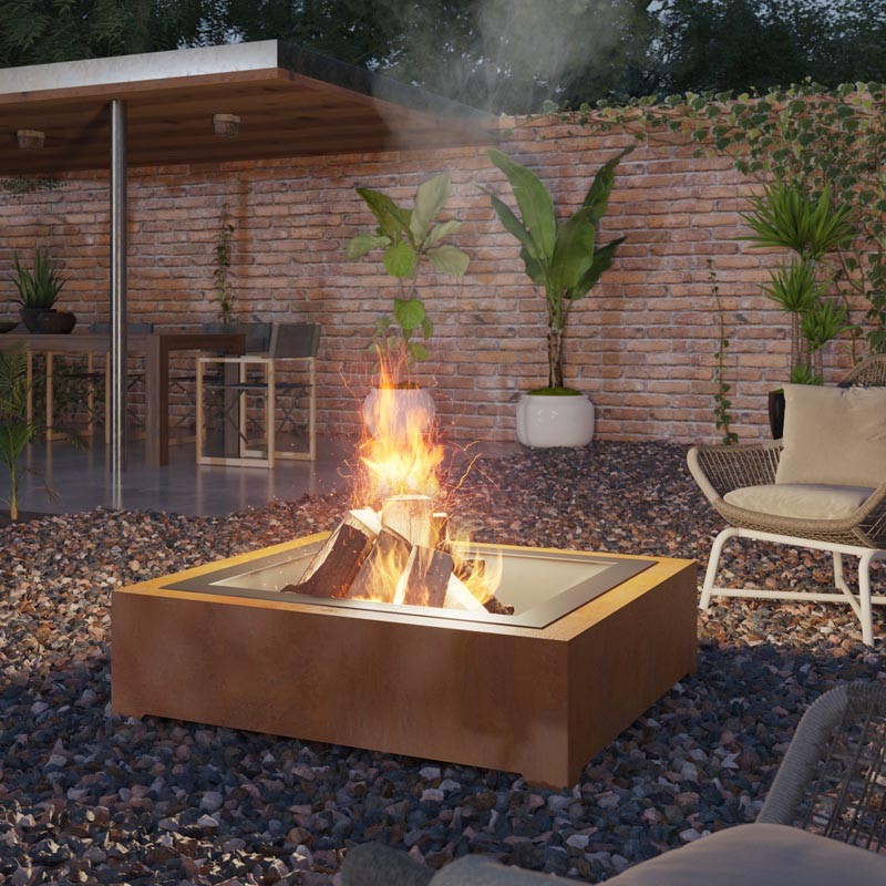 Wysokiej jakości palenisko Corten Square o szerokości 100 cm nie tylko pozwoli na rozpalenie dużego ogniska, ale również ozdobi otaczającą go przestrzeń. Jego cechami charakterystycznymi jest solidna, składająca się z dwóch elementów (obudowy i wkładu) konstrukcja ze zdejmowaną pokrywą zabezpieczającą wykonana z niezwykłą starannością i dbałością o najmniejszy detal. Wszystkie elementy stałe zostały zespawane ze sobą tworząc niesamowicie solidny i stabilny produkt.