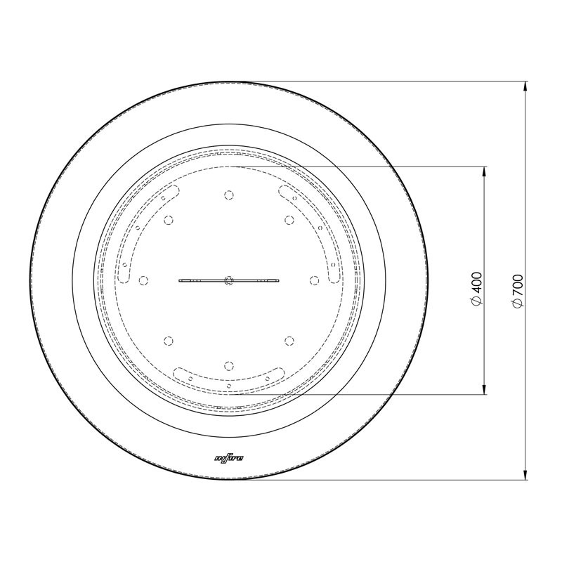 Ten model został również wyposażony w fabryczne otwory odprowadzające nadmiar deszczówki, które skutecznie zapobiegają gromadzeniu się wody w misie. Dzięki temu palenisko jest zawsze gotowe do użytku, a stalowa konstrukcja pozostaje zabezpieczona przed korozją. To praktyczne rozwiązanie ułatwia konserwację i wydłuża żywotność produktu. Otwory drenażowe to gwarancja wygody i trwałości, niezależnie od warunków pogodowych. Z uwagi na otwory na dnie palenisko powinno stać na płaskim, równym podłożu wykonanym z materiału niepalnego.