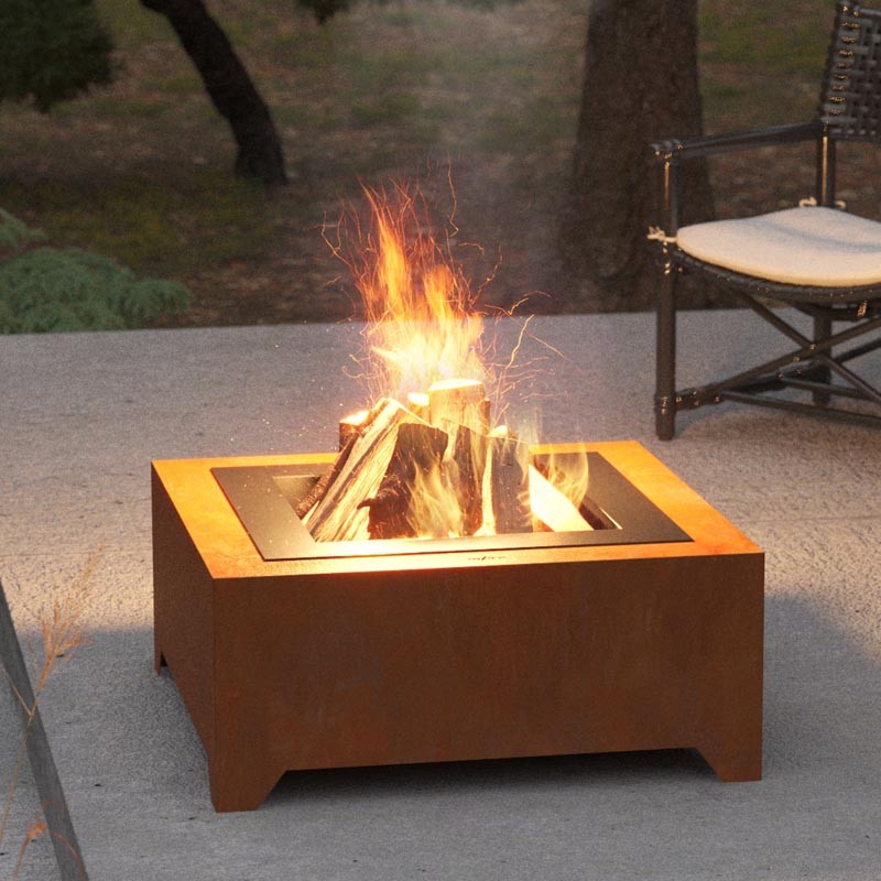 Wysokiej jakości palenisko Corten Square o szerokości 70 cm nie tylko pozwoli na rozpalenie dużego ogniska, ale również  ozdobi otaczającą go przestrzeń. Jego cechami charakterystycznymi jest solidna, składająca się z dwóch elementów (obudowy i wkładu) konstrukcja ze zdejmowaną pokrywą zabezpieczającą wykonana z niezwykłą starannością i dbałością o najmniejszy detal. Wszystkie elementy stałe zostały zespawane ze sobą tworząc niesamowicie solidny i stabilny produkt.