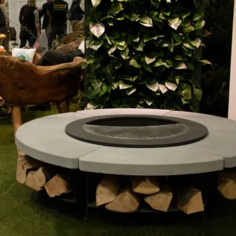Wykorzystany beton to wysokowartościowa mieszanka o wyjątkowej wytrzymałości, sprężystości i odporności na zabrudzenia oraz uszkodzenia mechaniczne. Dzięki impregnacji wodo- i tłuszczoodpornej powierzchnia paleniska pozostaje estetyczna i łatwa w utrzymaniu. Nowoczesne, surowe wykończenie betonu doskonale wpisuje się w minimalistyczne i eleganckie aranżacje ogrodowe.