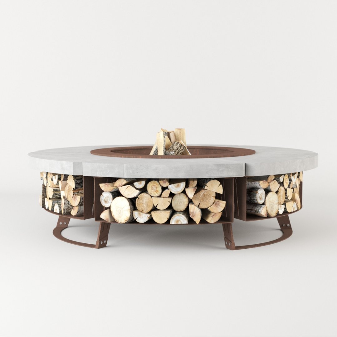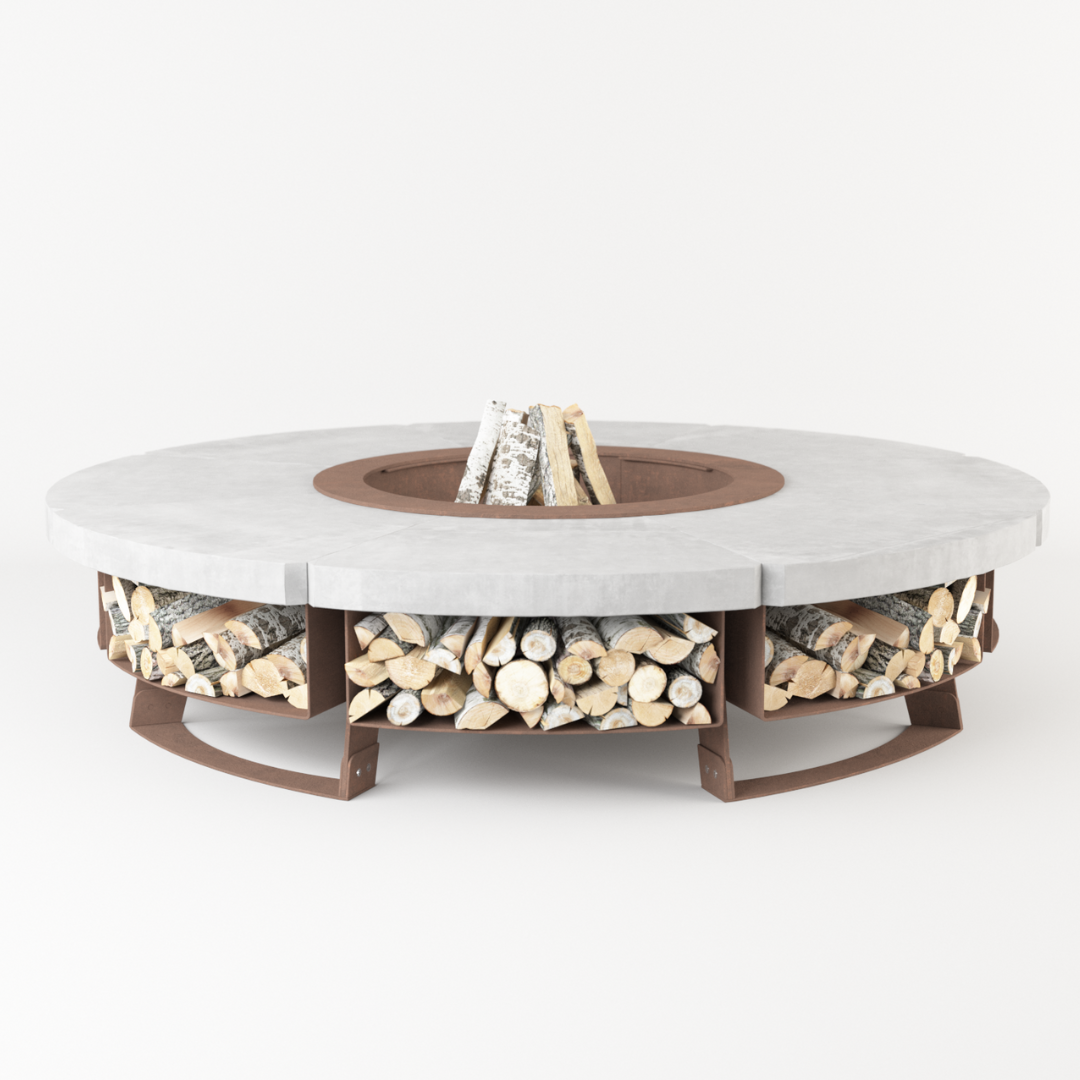 Palenisko Hetta Round 120 Corten Beton to połączenie stali, betonu, drewna i ognia. Do produkcji tego paleniska użyto najlepszej na rynku stali. Hetta Round jest doskonałością formy okręgu, zestawioną z pięknem czystej stali i nowoczesnego betonu. Producent paleniska, firma Hetta Supply, połączyła w tym modelu doskonałą formę okręgu z dopracowaną w każdym detalu stalą.