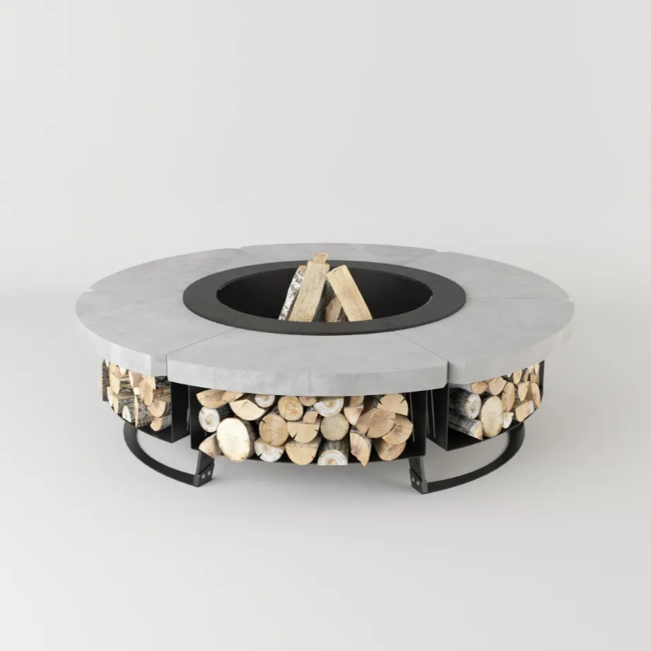 - Nowoczesny design i funkcjonalność – minimalistyczna forma paleniska doskonale komponuje się z różnymi stylami aranżacji ogrodu. Dodatkowo wbudowane półki na drewno podkreślają elegancki wygląd, a także zapewniają wygodne przechowywanie opału. Co więcej ten model posiada fabryczne otwory odpływowe.