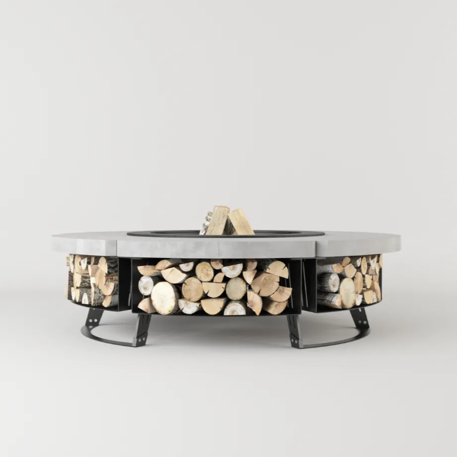 - Stalowa elegancja z industrialnym designem – stal konstrukcyjna S335 i wykończenie z betonu HPC nadaje palenisku minimalistyczny, nowoczesny wygląd, doskonale komponujący się z różnymi aranżacjami ogrodowymi.