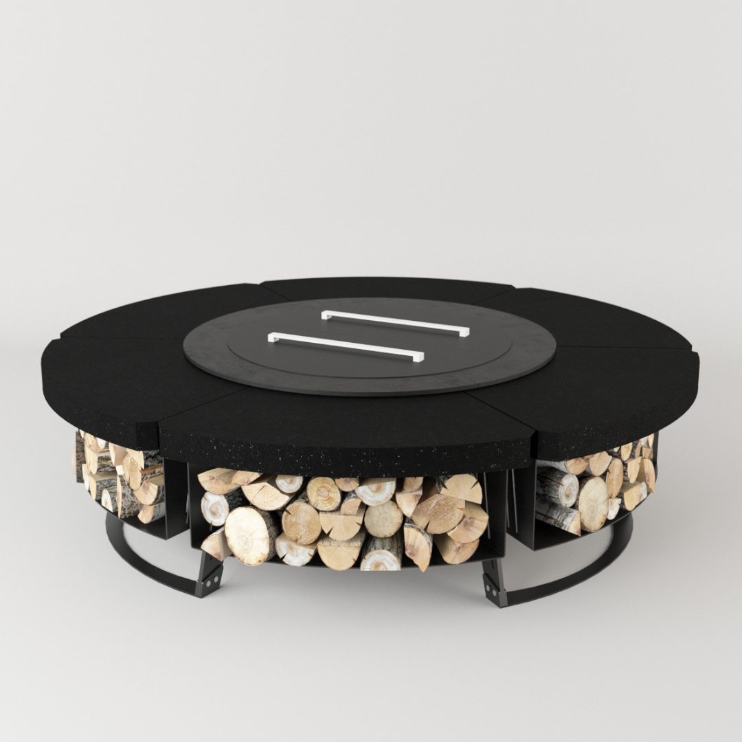 - Nowoczesny design i funkcjonalność – minimalistyczna forma paleniska doskonale komponuje się z różnymi stylami aranżacji ogrodu. Dodatkowo wbudowane półki na drewno podkreślają elegancki wygląd, a także zapewniają wygodne przechowywanie opału. Co więcej ten model posiada fabryczne otwory odpływowe.