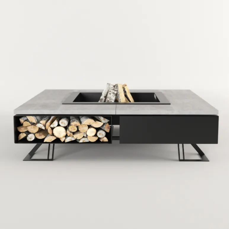 - Nowoczesny design i funkcjonalność – minimalistyczna forma paleniska doskonale komponuje się z różnymi stylami aranżacji ogrodu. Dodatkowo wbudowane półki na drewno podkreślają elegancki wygląd, a także zapewniają wygodne przechowywanie opału. Co więcej ten model posiada fabryczne otwory odpływowe.