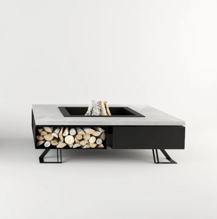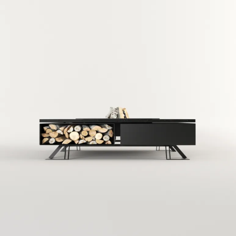 - Nowoczesny design i funkcjonalność – minimalistyczna forma paleniska doskonale komponuje się z różnymi stylami aranżacji ogrodu. Dodatkowo wbudowane półki na drewno podkreślają elegancki wygląd, a także zapewniają wygodne przechowywanie opału. Co więcej ten model posiada fabryczne otwory odpływowe.