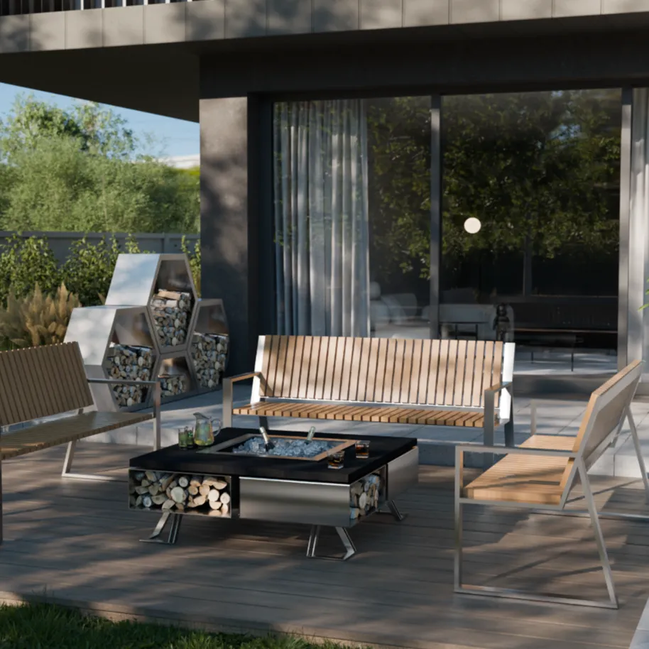 Palenisko Hetta Square 120 Stal Granit Viscount to harmonijne połączenie stali, kamienia, drewna i ognia zamknięte w nowoczesnej, geometrycznej formie kwadratu. Do produkcji tego paleniska użyto najlepszej na rynku stali, a całość dopełnia wytrzymała obudowa z kamienia oraz przemyślane detale, które podkreślają jego minimalistyczny charakter. Hetta Square to manifest nowoczesnego designu – funkcjonalne dzieło sztuki ogrodowej, które przyciąga wzrok i buduje atmosferę.