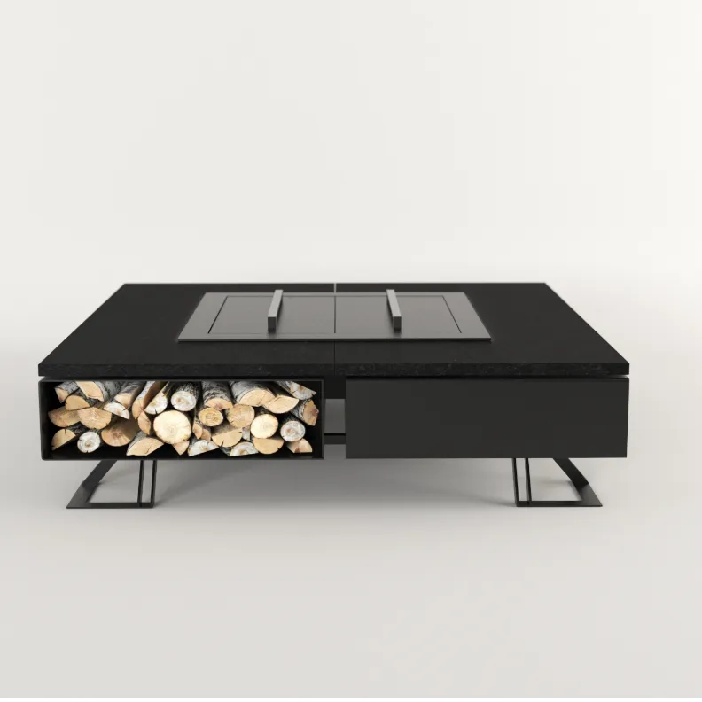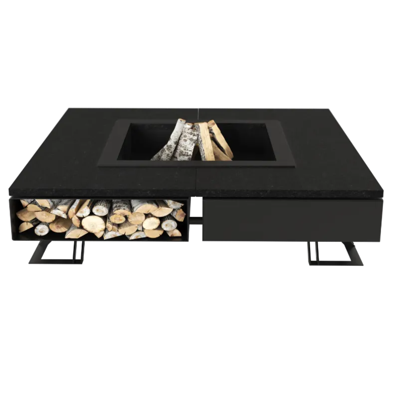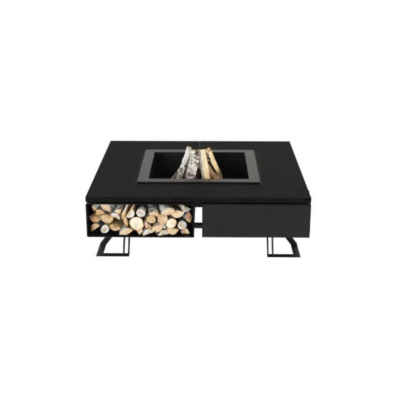 - Nowoczesny design i funkcjonalność – minimalistyczna forma paleniska doskonale komponuje się z różnymi stylami aranżacji ogrodu. Dodatkowo wbudowane półki na drewno podkreślają elegancki wygląd, a także zapewniają wygodne przechowywanie opału. Co więcej ten model posiada fabryczne otwory odpływowe.