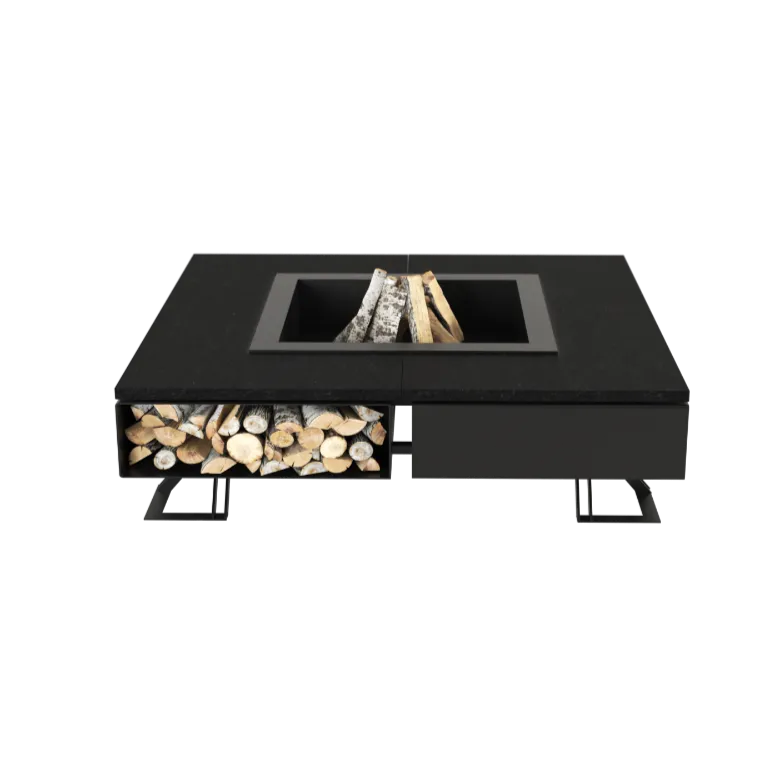 - Nowoczesny design i funkcjonalność – minimalistyczna forma paleniska doskonale komponuje się z różnymi stylami aranżacji ogrodu. Dodatkowo wbudowane półki na drewno podkreślają elegancki wygląd, a także zapewniają wygodne przechowywanie opału. Co więcej ten model posiada fabryczne otwory odpływowe.