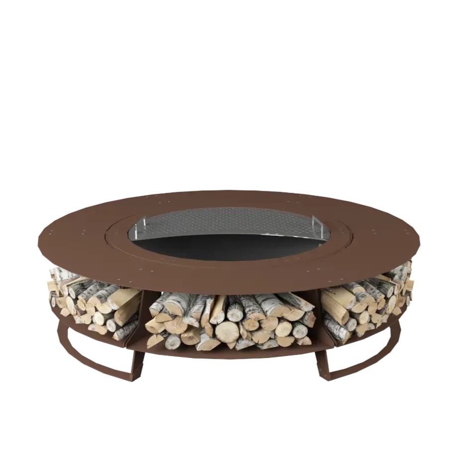 - Solidna konstrukcja i bezpieczeństwo – wykonane z wysokiej jakości stali corten, która charakteryzuje się wyjątkową trwałością i odpornością na warunki atmosferyczne. Umocowanie konstrukcji na nogach zapewnia stabilność, a głęboka misa ogranicza rozprzestrzenianie się iskier.