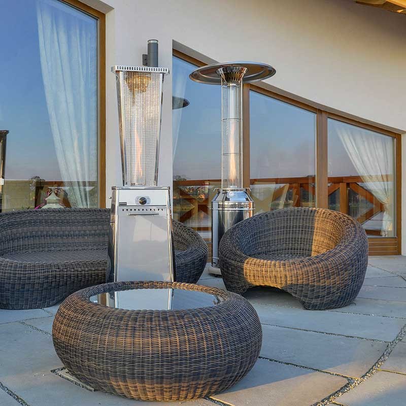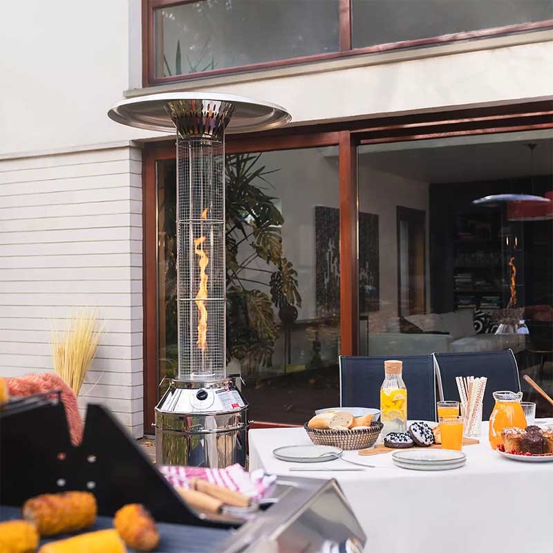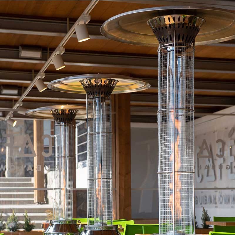 Specjalnie skonstruowany palnik pozwala na swobodne spalanie płomienia gazowego oraz jednocześnie dopala jego spaliny. Funkcja dopalania spalin wraz z dodatkowym emiterem podczerwieni znajduje się w górnej części promiennika (jest to charakterystyczne dla gazowych parasoli grzewczych). Dzięki tym rozwiązaniom można uzyskać efektywność cieplną o ponad 30% wyższą od promienników tradycyjnych, przy jednoczesnym stosunkowo niewielkim zużyciu gazu.